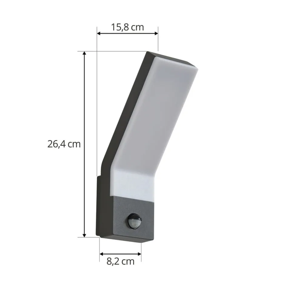 Lindby LED buiten wandlamp Korvik, 26 cm, antraciet, sensor