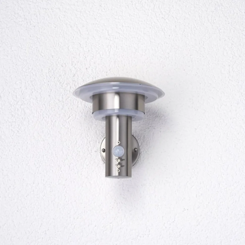 LED buiten wandlamp Lillie in een prachtige roestvrijstalen look Deze LED buiten wandlamp wordt geleverd met een aanwezigheidsmelder, wat het gemak voor de consument natuurlijk vergroot. Dit betekent dat je niet langer hoeft te zoeken naar een schakelaar, die zich misschien binnen in huis bevindt, maar dat je erop kunt vertrouwen dat de aanwezigheidsmelder betrouwbaar reageert op het verschijnen van mensen door de buitenwandlamp in te schakelen. Aan de aanwezigheidsmelder kunnen de volgende wijzigingen worden aangebracht: De lichtduur kan worden aangepast (5s-4min) en ook het bereik kan worden gevarieerd (2-8m). De roestvrijstalen kap heeft een licht koepelvormig ontwerp en straalt het licht op twee punten naar beneden, waardoor het bijzonder aangenaam is omdat het indirect is. De roestvrijstalen look heeft een zeer moderne uitstraling en wordt gekenmerkt door een bijzondere elegantie, die goed tot zijn recht komt in een eigentijdse omgeving.
