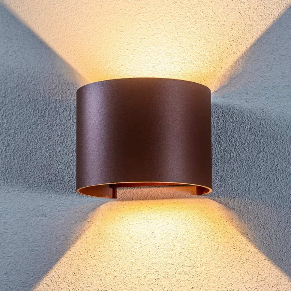 Lindby LED buitenwandlamp Nivar, rond, roest, metaal, IP54