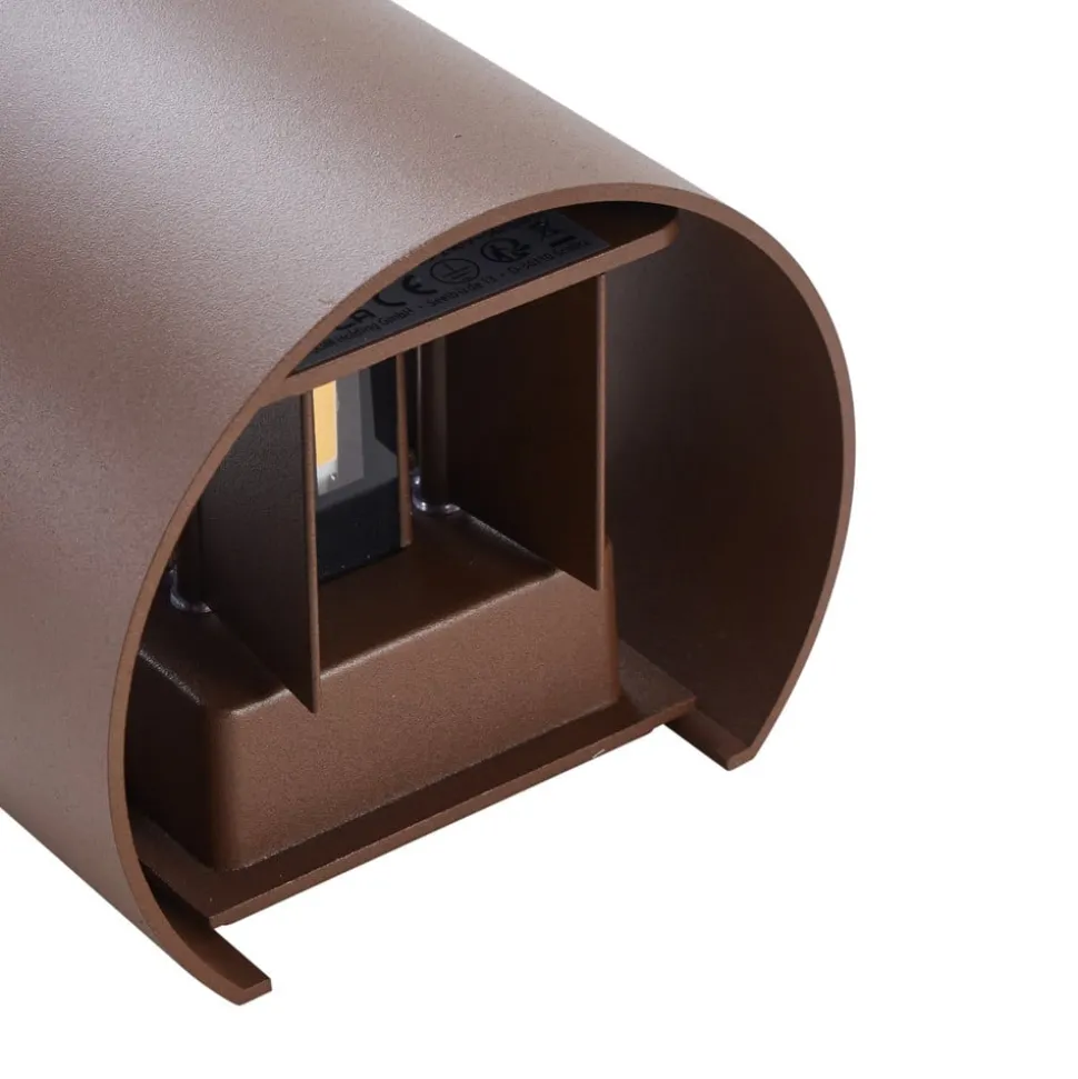 Bruine LED buiten wandlamp Nivar gemaakt van metaal met een afgeronde look Deze buitenlamp verlicht je buitenruimte en is ook een aantrekkelijke aanvulling dankzij de mooie algemene esthetiek. De warmwitte lichtkleur baadt je voortuin, binnenplaats of oprit in een geweldige flair. Dankzij de beschermingsgraad IP54 is de wandlamp beschermd tegen stof en spatwater. Met haar aantrekkelijke verschijning maakt ze het verlichtingsconcept van elke buitenruimte effectief compleet. De lamp zorgt voor een prachtige flair met één lichtbron. Met haar mooie design past deze geweldige lamp perfect bij je buiteninrichting en creëert ze een aangename sfeer. De buitenwandlamp in moderne stijl is afgewerkt in bruin. De metalen lamp zal je veel plezier doen en kan met succes worden geïntegreerd in een grote verscheidenheid aan buitenruimtes. Het maakt niet uit waar je hem aansluit, deze buitenlamp garandeert overal een gezellige sfeer waarin je je altijd helemaal op je gemak voelt – Stralingshoek instelbaar van 1-120°
