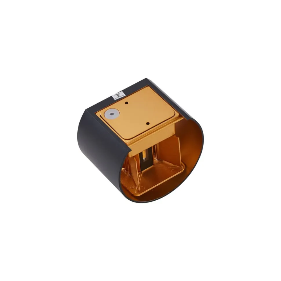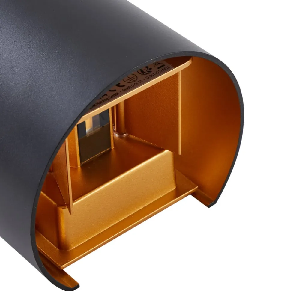 Zwarte metalen LED buiten wandlamp Nivar met goudkleurig interieur Deze wandlamp geeft je buitenruimte net dat beetje extra met zijn aantrekkelijke licht en uitstekende uiterlijk. Het warmwitte licht baadt je oprit, binnenplaats of terras in een sfeervolle feelgoodstemming. De wandlamp vult het verlichtingsconcept van elke ruimte aangenaam aan met haar aantrekkelijke ontwerp. Dankzij de beschermingsgraad IP54 is ze beschermd tegen stof en spatwater. De buitenwandlamp creëert een sfeervolle ambiance met een lichtbron. Voor deze lamp is metaal gebruikt. De zwarte wandlamp maakt ook visueel indruk met haar moderne ontwerp. Ze creëert een prachtige sfeer en bepaalt de sfeer van je interieur. De wandlamp is perfect voor verlichting op maat, is een chique decoratief element en geeft je buiteninrichting net dat beetje extra. Maak van je balkon, terras of tuin een ontspannend toevluchtsoord met deze wandlamp in de warmere maanden van het jaar – Stralingshoek instelbaar van 1-120°