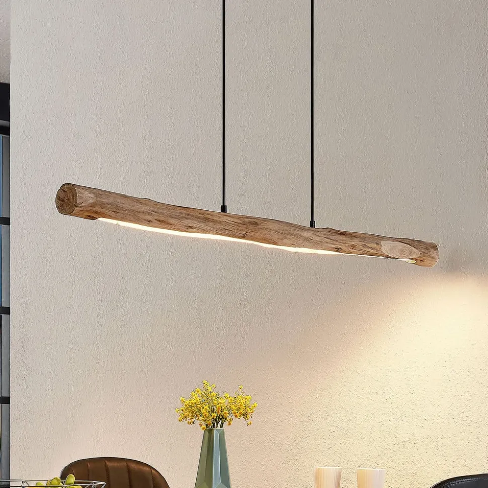Lindby LED hanglamp Nekala, zwart, hout, lengte 120cm