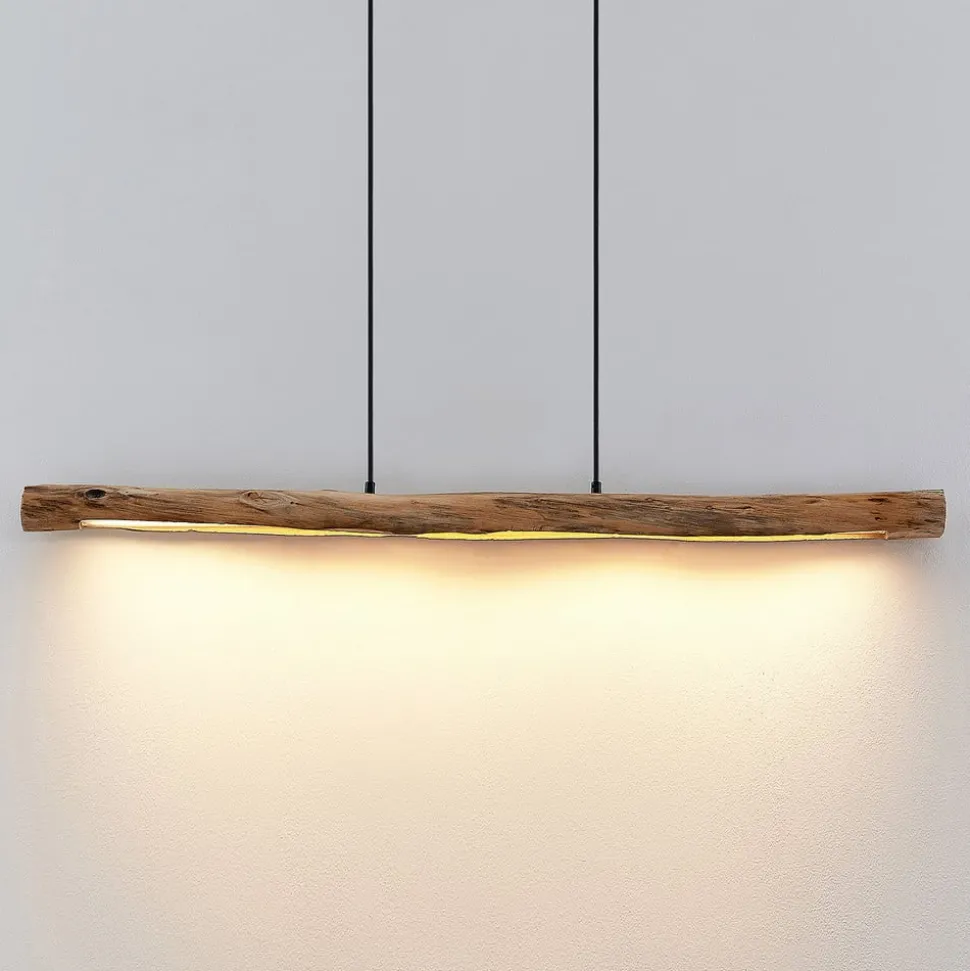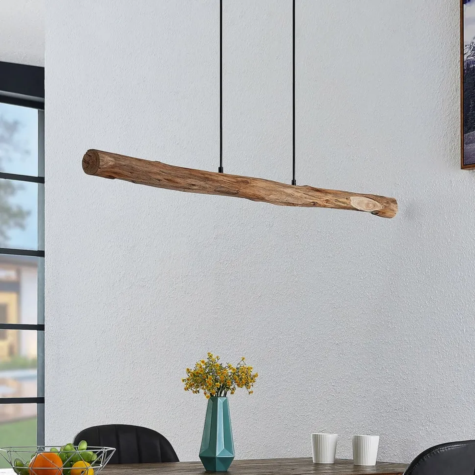 Bijzondere LED hanglamp Nekala met een balk van eucalyptushout De LED hanglamp Nekala maakt indruk met geavanceerde LED technologie en een stijlvol ontwerp dat perfect geïntegreerd kan worden boven een eetkamertafel. De kap van de lamp is gemaakt van hoogwaardig eucalyptushout, wat een gezellig aspect in de woonkamer brengt. Met de wandschakelaar kun je de lamp niet alleen in- en uitschakelen, maar ook de helderheid aanpassen naar 3 verschillende niveaus (25% – 70% – 100%) door de schakelaar meerdere keren in te drukken dankzij de 3-staps dimtechnologie.