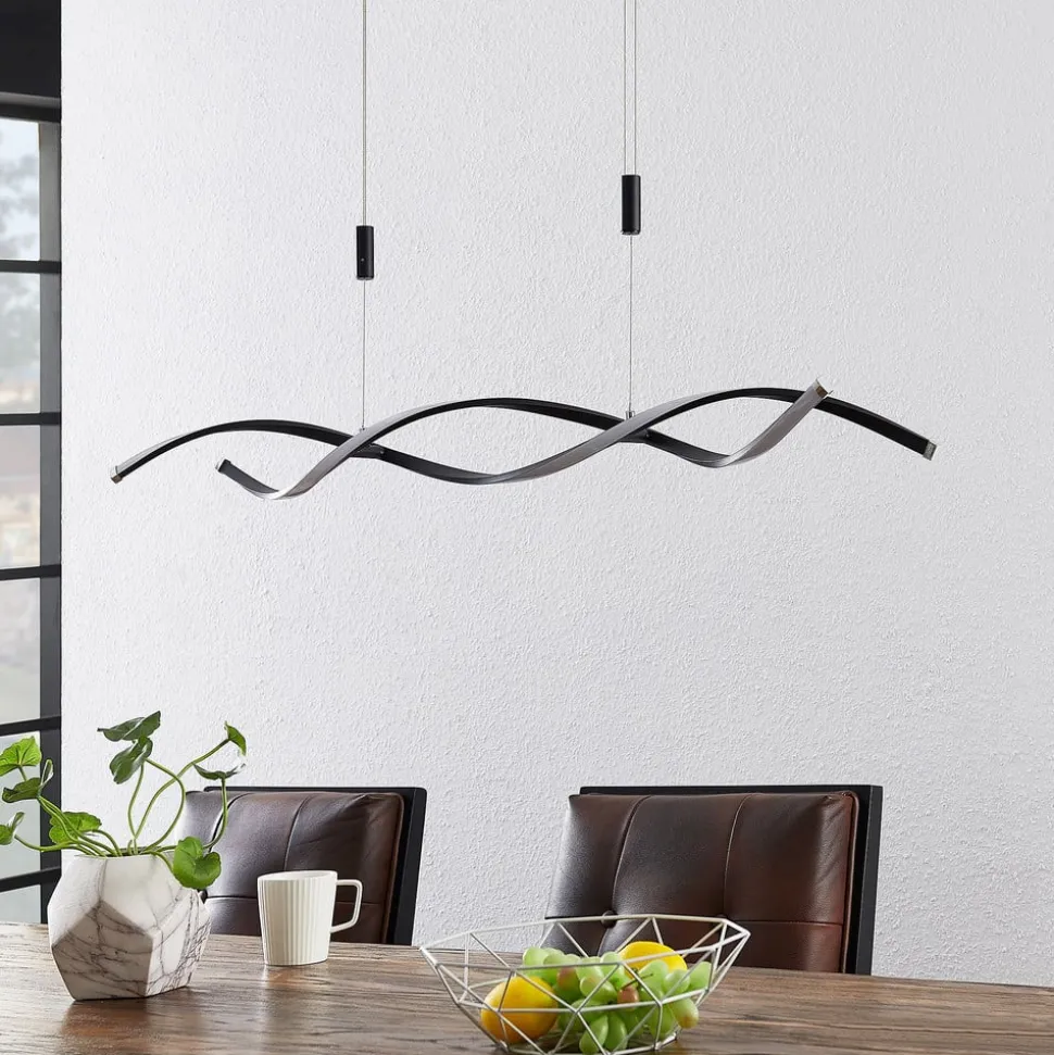 Lindby LED hanglamp Welina, zwart, ijzer, verstelbaar