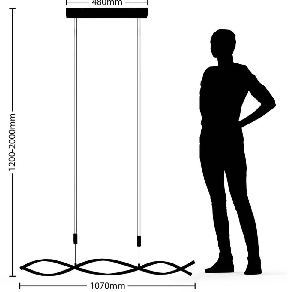 Designgerichte LED hanglamp Welina, in hoogte verstelbaar Deze interessante lamp heeft een boeiende uitstraling die prachtig staat in de woonkamer of boven een eetkamertafel. De mooi gevormde armatuur in spiraalvorm heeft krachtige, vast geïnstalleerde LED’s die een warmwit licht uitstralen. De hoogte van de afhanghoogte kan in een paar eenvoudige stappen worden aangepast, van 120 cm tot 200 cm. 3-staps dimbaar + uit: De lamp kan met de wandschakelaar worden in- en uitgeschakeld. Dankzij de 3-staps dimtechnologie kan het licht ook worden gedimd tot drie verschillende helderheidsniveaus door de schakelaar meerdere keren in te drukken: 100%, 50%, 10%.