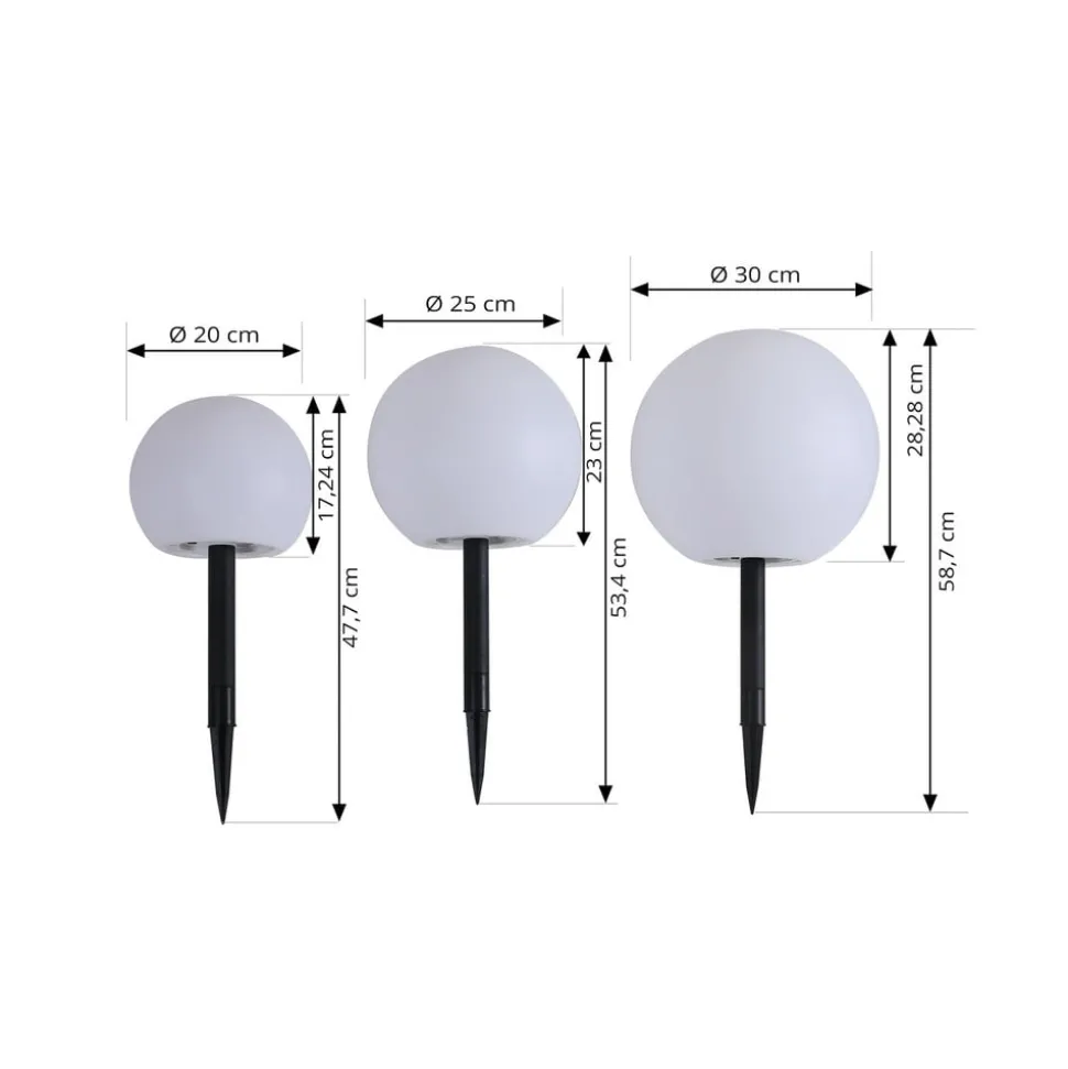 Lindby LED lamp op zonne-energie Lago, set van 3, bollen, grondpin, wit