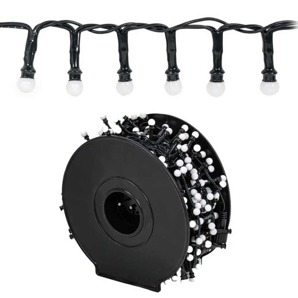 Miyu LED lichtketting voor binnen en buiten De Miyu LED lichtketting is een prachtige verlichtingsoplossing voor binnen en buiten. Met 500 warmwitte LED’s creëert het een gezellige sfeer in de woonkamer, slaapkamer of op het terras. Miyu is gemaakt van robuust kunststof en voorzien van beschermingsgraad IP44, is weerbestendig en kan zowel binnen als buiten worden gebruikt. Voor sfeervolle verlichting op feestjes of voor een romantische sfeer op het terras – deze lichtketting is veelzijdig. Hij is eenvoudig te installeren en kan op verschillende plaatsen worden bevestigd. Met zijn stijlvolle zwart-witte design is Miyu een prachtige aanwinst voor elk huis – incl. timerfunctie