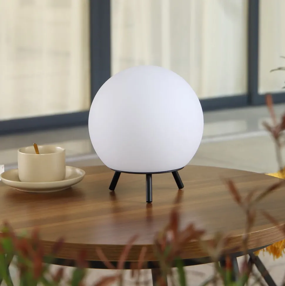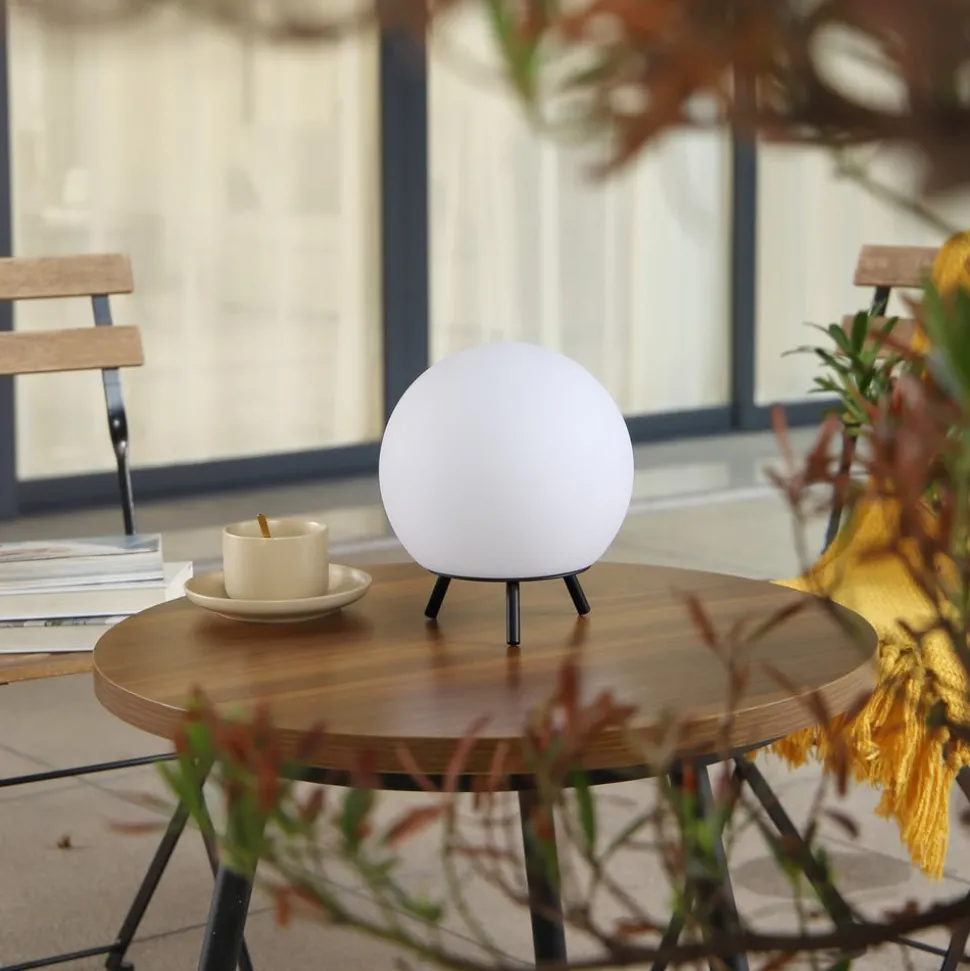 Aurilia bolvormige LED tafellamp – werkt op batterijen De LED terraslamp van ijzer en kunststof is een stijlvol en modern accessoire voor je buitenruimte. De bolvormige kap van kunststof zorgt voor een diffuse verlichting en geeft je tuin of terras een aangename sfeer. De lamp is uitgerust met een dimfunctie, zodat je de helderheid naar wens kunt aanpassen en een gezellige sfeer kunt creëren. De installatie van de LED terraslamp is eenvoudig en ongecompliceerd. Aurilia wordt gevoed door een oplaadbare batterij, die wordt opgeladen met de meegeleverde USB-DC-kabel – incl. USB-DC-kabel – incl. 2.000mAh Li-ion batterij – batterijlevensduur 8 uur – meertraps dimfunctie via een schakelaar op de behuizing (25%, 50%, 75% en 100%)