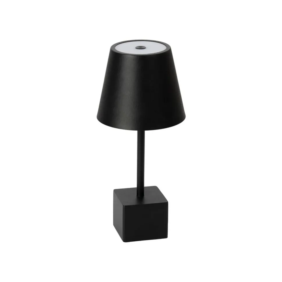 Lindby LED oplaadbare tafellamp Janea CUBE, zwart, metaal