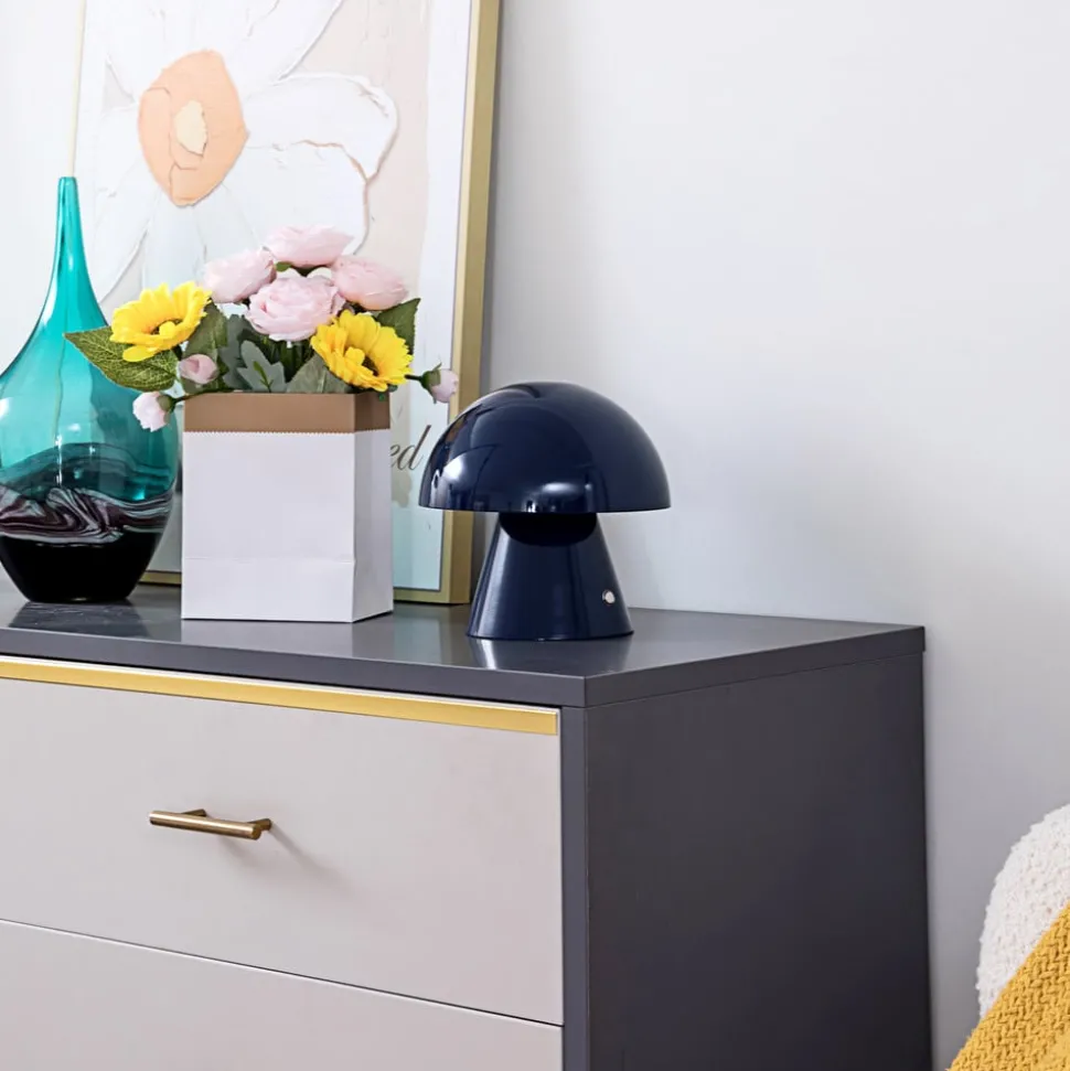 Donkerblauwe LED tafellamp Nevijo in een spannende paddenstoelvorm – op batterijen, dimbaar Deze tafellamp is een smaakvolle aanvulling op je verlichtingsconcept. De tafellamp heeft een dimmeroptie om de helderheid naar wens te regelen. Het warmwitte licht geeft je woonkamer een gezellige sfeer. Je kunt de tafellamp intuïtief in- en uitschakelen met een schakelaar. Het geweldige ontwerp van de lamp past gemakkelijk in elke kamer en geeft aangenaam licht voor een persoonlijke woonsfeer. Laat je inspireren door de hoge kwaliteit en het geweldige design van het merk Lindby. De tafellamp is donkerblauw van kleur en gemaakt van ijzer. Deze tafellamp creëert een prachtige sfeer in elke kamer en voegt een gezellig element toe aan je interieur. De tafellamp is perfect om het concept van elk interieur af te ronden. Deze lamp zal je huis opfleuren – incl. 3,7V lithium batterij