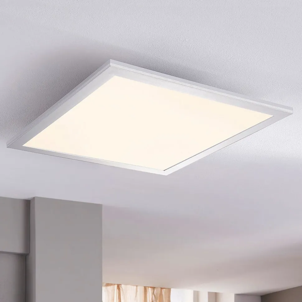 Functionele LED plafondlamp Livel in een vierkante vorm in een set van 2 Deze LED plafondlamp heeft de vorm van een paneel en is een praktische allrounder die op verschillende manieren kan worden gebruikt. De keuken en de gang zijn populaire locaties voor dergelijke discrete verlichtingselementen, maar het armatuur past natuurlijk ook perfect in het kantoor. De aluminium rand van Livel is zilverkleurig en het hoekige PMMA-oppervlak draagt bij aan een gelijkmatige lichtverdeling, wat zorgt voor een comfortabele verlichting van de ruimte. De LED’s in een universeel witte lichtkleur zorgen niet alleen voor een relatief laag energieverbruik, maar vormen ook een krachtige lichtbron – de LED plafondlamp wordt geleverd in een praktische set van 2 stuks