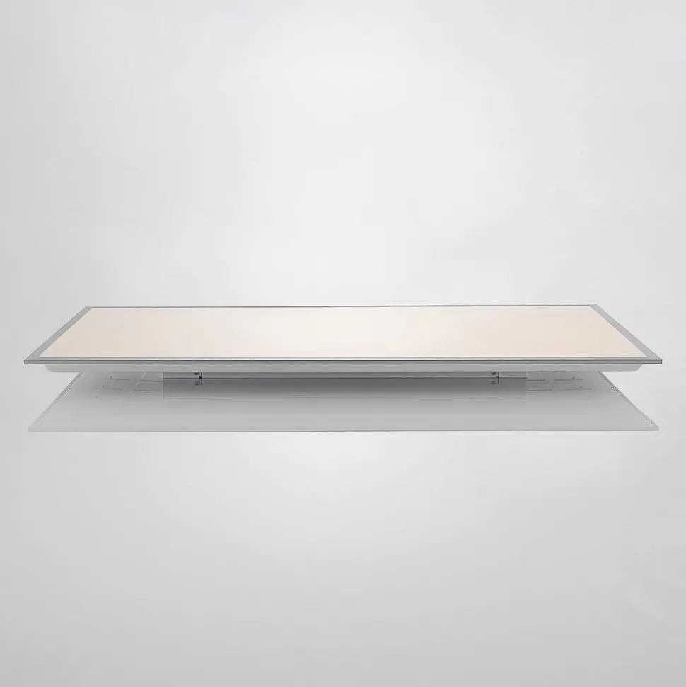 Dimbaar Stenley LED paneel in een eenvoudige rechthoekige vorm met een kleurwisselfunctie Het grote Stenley LED paneel maakt indruk met krachtige technologie en een modern, strak ontwerp in de vorm van een rechthoek. De randen van het paneel zijn afgewerkt in aluminium met een modieuze grijze afwerking, waardoor een zeer elegant en solide effect ontstaat. De witte lichtkap van duurzaam kunststof zorgt ervoor dat het licht zacht en homogeen door de kamer wordt verspreid. Het fungeert als een diffuser en zorgt voor een niet-verblindende en gelijkmatige verlichting. Stenley kan in verschillende ruimtes worden gebruikt dankzij de veelzijdige en nuttige functies. Enerzijds zorgt het paneel voor heldere taakverlichting. Anderzijds kunnen de helderheid en lichtkleur met de meegeleverde afstandsbediening in een handomdraai worden aangepast om een gezellige sfeer te creëren met warmwit licht. De lichtkleur kan ook in drie stappen worden aangepast met de standaard lichtschakelaar en het paneel scoort ook punten met zijn geïntegreerde geheugenfunctie en nachtlichtmodus. Het lage stroomverbruik is nog een voordeel dat voor zich spreekt. Dit is precies waarom deze stijlvolle en functionele lamp geschikt is voor gebruik in zowel de particuliere als de commerciële sector. Technische gegevens: – dimbaar (via afstandsbediening) – veranderbare lichtkleur CCT (warmwit/universeel wit/daglicht – regelbaar via afstandsbediening of drietrapsschakelaar) – nachtlichtmodus – geheugenfunctie – geschikt voor commercieel en particulier gebruik