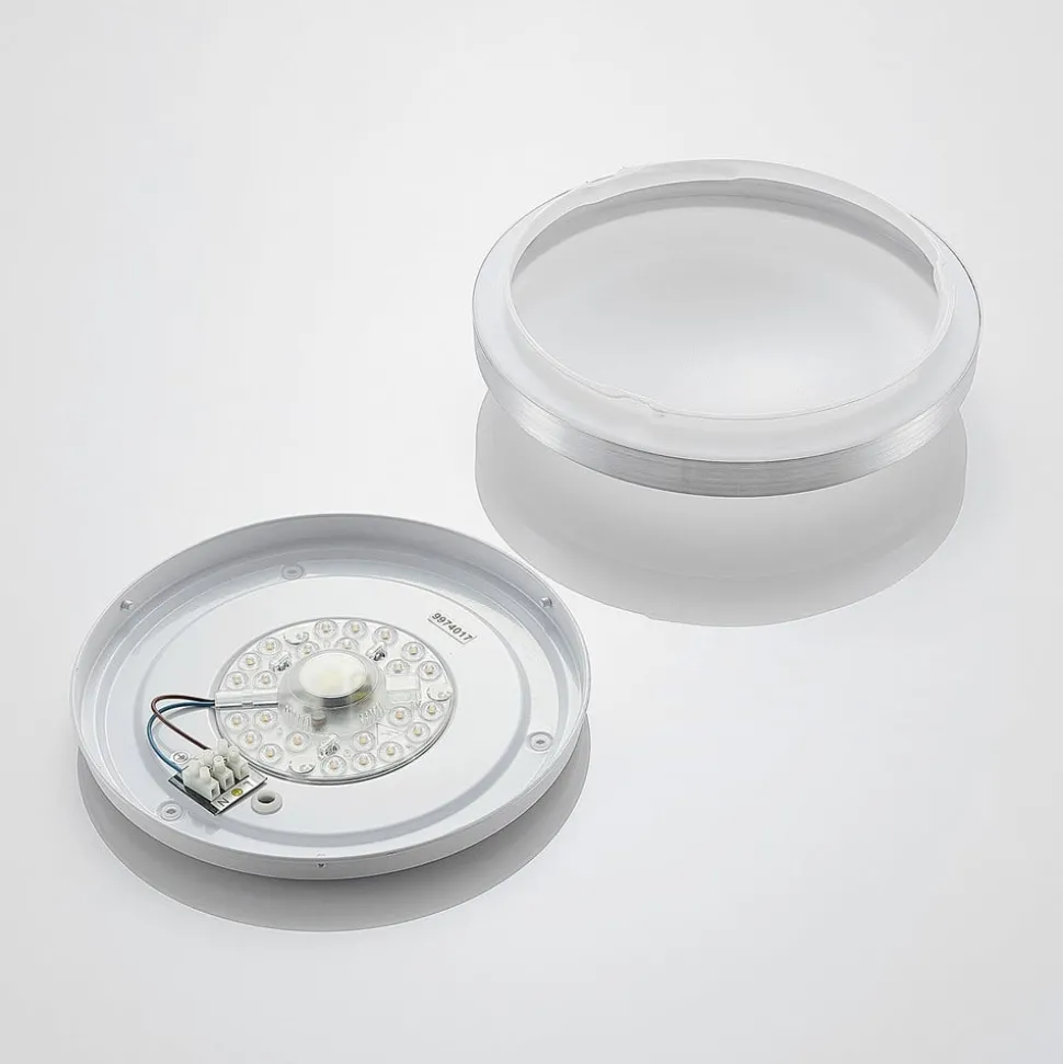 Emelie ronde LED plafondlamp met aluminium frame Deze LED plafondlamp ziet er heel eenvoudig uit met haar ronde vorm en het ontbreken van onnodige details. Het ronde verlichte oppervlak is gemaakt van wit kunststof en creëert een zacht, gelijkmatig licht dat aangenaam wordt waargenomen in de hele woonruimte. Als plafondlamp is Emelie een mooie aanvulling op de basisverlichting, vooral in gangen en keukens. Het zijframe is gemaakt van aluminium met een natuurlijk ogende afwerking in een aantrekkelijke zilveren tint en dankzij de permanent geïntegreerde LED’s kan een goede efficiëntie en heldere verlichting worden gegarandeerd.