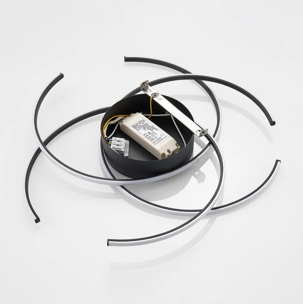De LED plafondlamp Hamza heeft een buitengewone uitstraling. De armatuur bestaat uit drie lichtcirkels die elkaar in het midden overlappen en aan de buitenrand een opening hebben. De vast ingebouwde LED loopt in de vorm van de cirkels en zorgt voor een interessant lichtspel op het plafond, wat een sfeervolle ambiance creëert. De LED plafondlamp Hamza is dus niet alleen een interessant decoratiestuk, maar ook een betrouwbare lichtbron. Het spannende uiterlijk past uitstekend in de woonkamer of slaapkamer en geeft de ruimte een decoratieve accent.