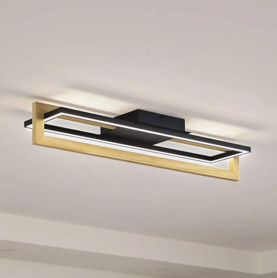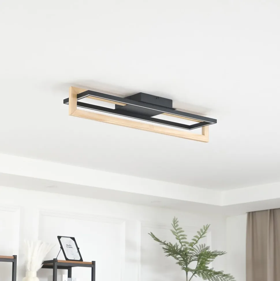 Holamu LED plafondlamp met houten detail Die Holamu LED plafondlamp is een Modieuze verlichtingsoplossing voor je huis. Mite een geïntegreerde LED lichtbron geeft energiebesparend licht en creëert een aangename sfeer in de woonkamer, slaapkamer en hal. Die stijlvolle houten look geeft de lamp een speciale Note en maakt het een blikvanger in elke kamer. Verwen jezelf met het fascinerende spel van licht en schaduw en laat je inspireren door de Holamu LED plafondlamp!