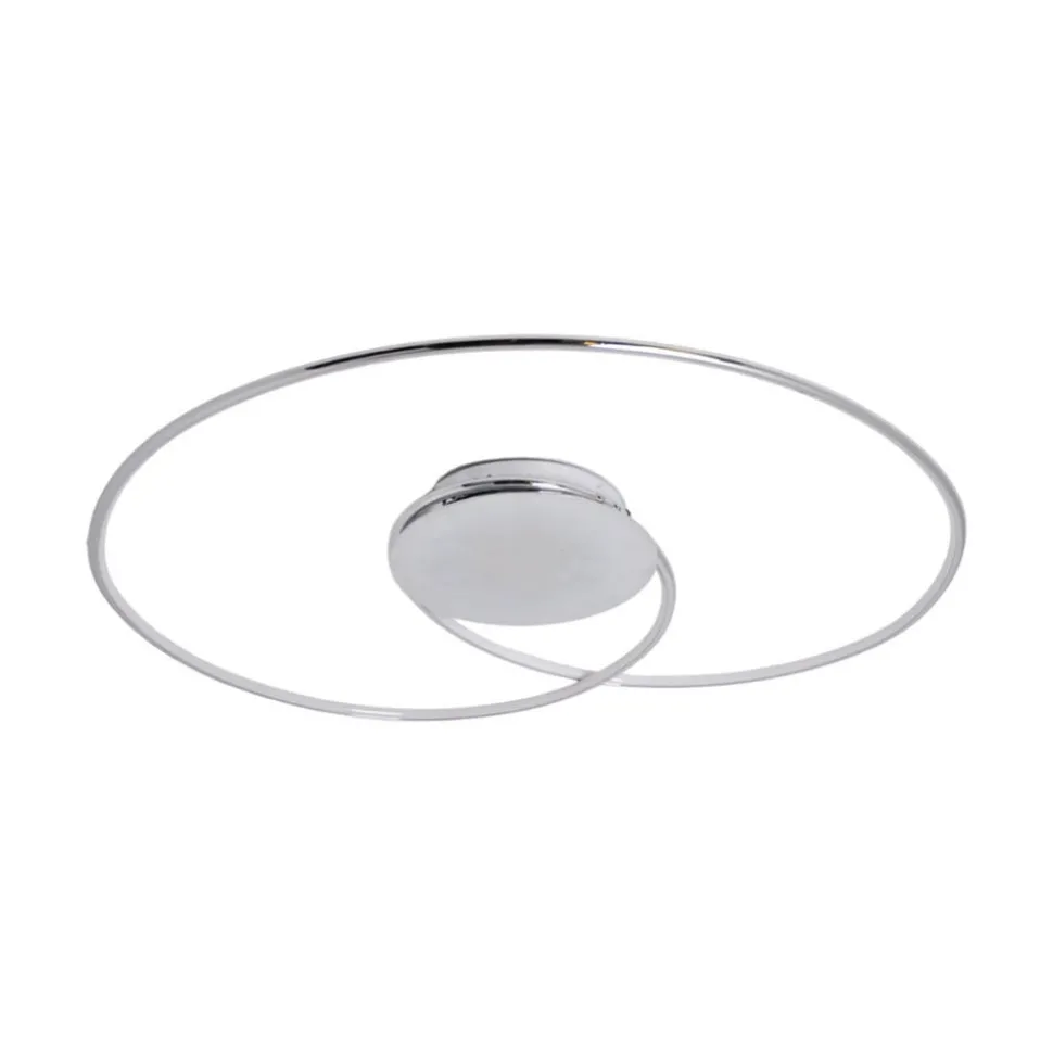 Elegante LED plafondlamp Joline met goede helderheid Het is een relatief sierlijke look die wordt geassocieerd met Joline, omdat de gebogen metalen ring, die bijna krakelingvormig is, slank en fijn bewerkt is. Het glanzende chroom wordt aangevuld door wit plastic, waarachter zich de LED lampen bevinden. En dit is precies een van de speciale kenmerken van LED’s, omdat hun compacte ontwerp volledig nieuwe armatuurontwerpen mogelijk maakt die er soms heel anders uitzien dan wat we gewend zijn van een conventioneel armatuur – een frame gecombineerd met een traditionele kap of kappen. De LED’s garanderen ook een goede energie-efficiëntie, waardoor Joline helder schijnt maar niet veel elektriciteit verbruikt.