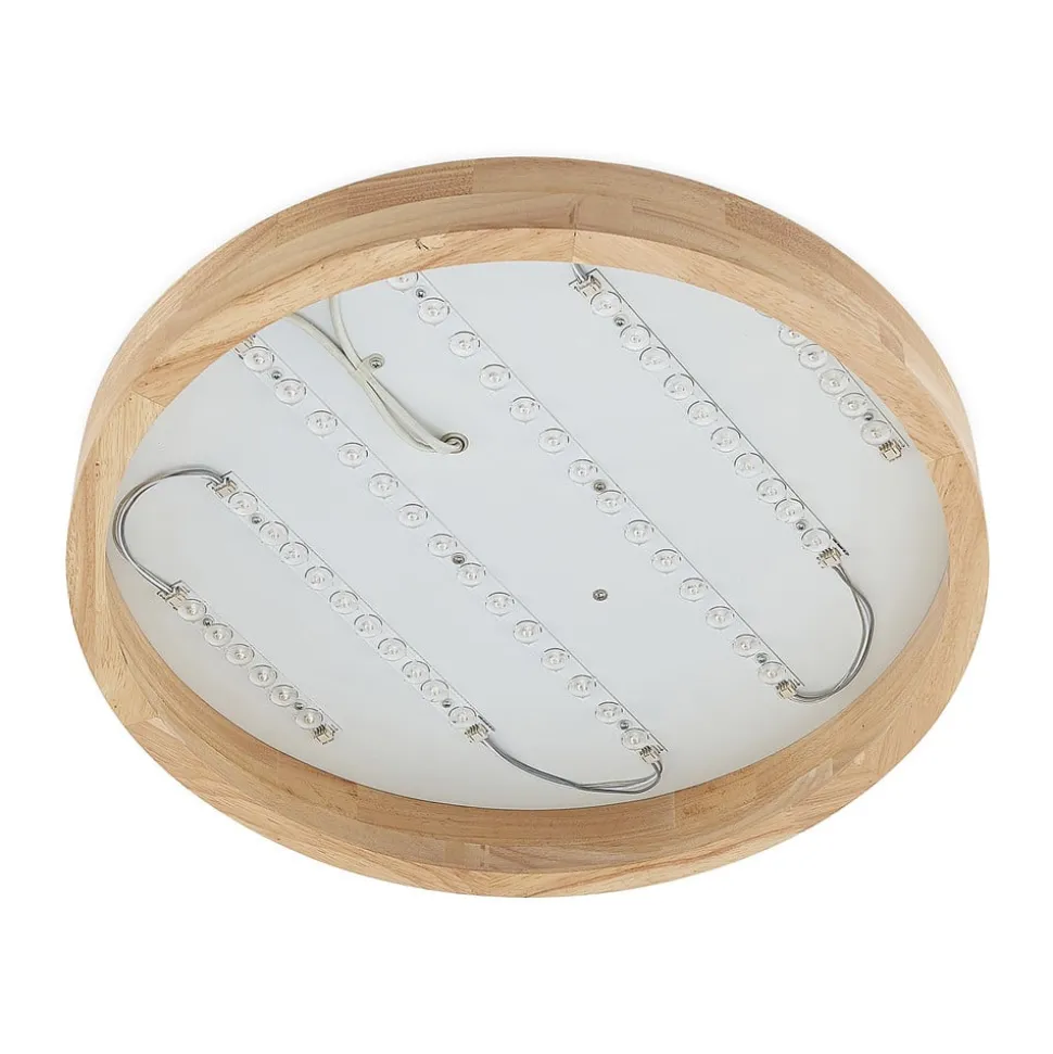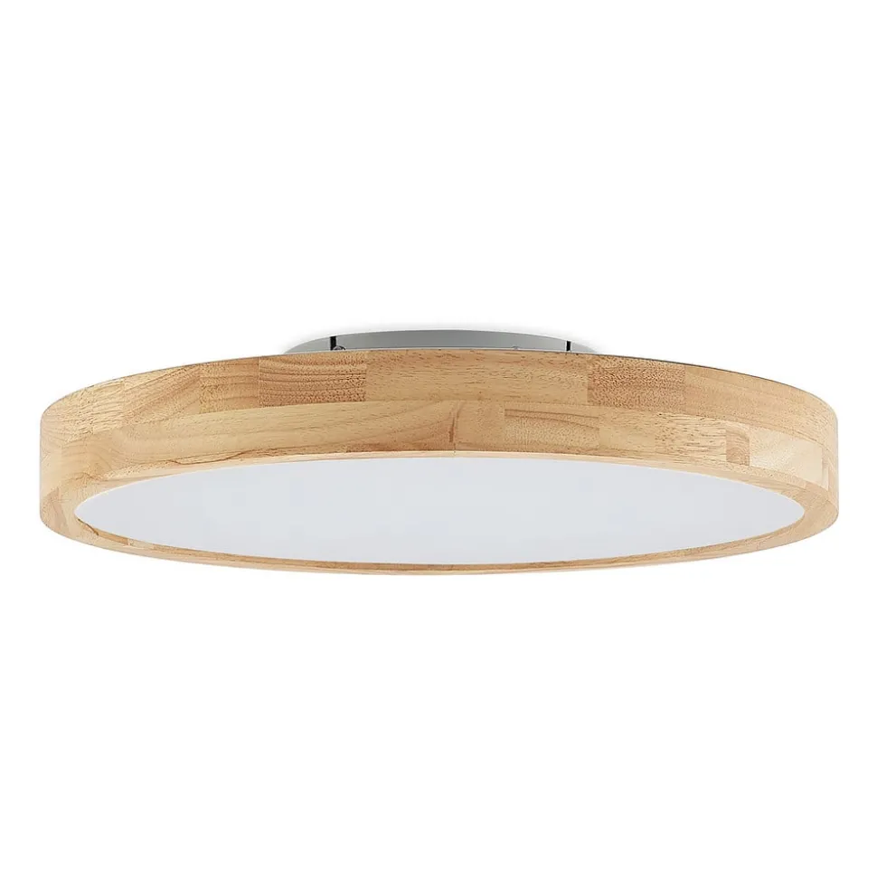 Dimbare Lanira LED plafondlamp met instelbare witte lichtkleur De Lanira LED plafondlamp heeft een speciaal ontwerp. De klassieke ronde vorm kan in bijna elke omgeving worden geïntegreerd zonder meteen de aandacht te trekken. De behuizing van mooi eikenhout geeft het armatuur een warm accent dat kan worden geïntegreerd in verschillende inrichtingsstijlen. Het armatuur kan traploos worden gedimd en de lichtkleur kan in drie fasen (3000 K, 4000 K, 6500 K) worden gewijzigd met de meegeleverde afstandsbediening. De lichtkleur kan in deze fasen ook worden gewijzigd met de normale wandschakelaar.