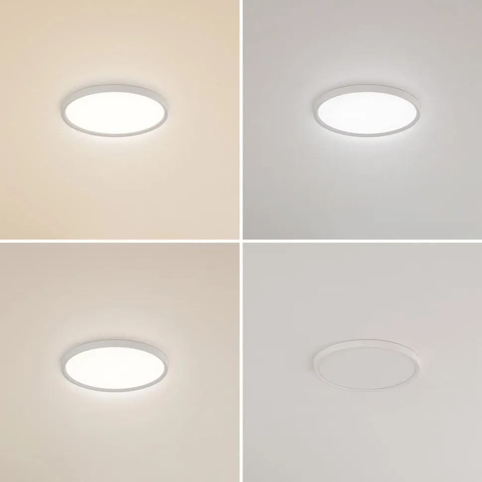 Ronde LED plafondlamp Pravin met drie verschillende witte lichtkleuren De ronde LED plafondlamp Pravin is een allrounder voor alle soorten kamers in huis. Onopvallend in ontwerp, maar groots in effect. De drie lichtkleuren warmwit (3.000 K), universeel wit (4.000 K) en daglicht (6.000 K) kunnen worden ingesteld met de lichtschakelaar. Deze functionaliteit maakt ze zo veelzijdig: warmer licht voor gezellige ruimtes in huis, koeler licht voor werkruimtes – of het nu in de studeerkamer is of in de werkplaats in de kelder.