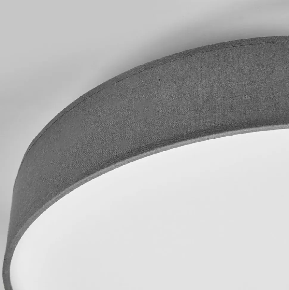 Cilindrische LED stoffen plafondlamp Saira met grijs oppervlak LED stoffen plafondlampen zijn helemaal in omdat ze moderne en energiebesparende LED technologie combineren met de charme van een klassiek stoffen oppervlak en hun licht wordt gekenmerkt door een speciale gezelligheid. In dit geval is de kap van de LED stoffen plafondlamp grijs. Terwijl deze kleur vroeger als saai en mat werd beschouwd, is het nu een van de trends in huis die hand in hand gaat met koele elegantie.