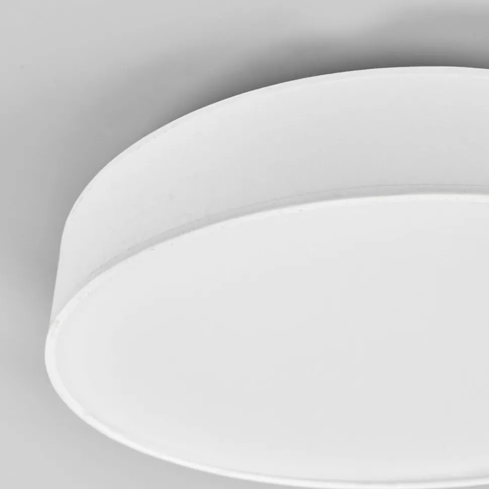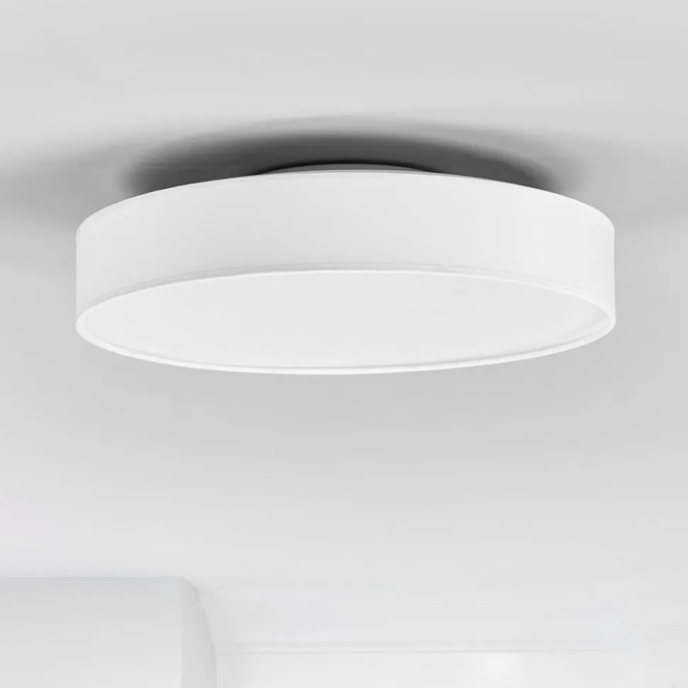 Heldere plafondlamp Saira met witte stoffen kap en warmwitte LED’s Saira maakt indruk met haar moderne eenvoud, omdat de met stof bedekte kap wit is en de ronde cilindrische vorm wordt gekenmerkt door een eigentijdse reductie van details. Zowel qua stijl als in relatie tot de ruimte waarin de plafondlamp is geïnstalleerd, is er een grote variatie, want dankzij het discrete uiterlijk kan Saira bijna universeel worden gebruikt. De ingebouwde LED-technologie wordt gekenmerkt door een hoog energiebesparingspotentieel en scoort ook punten voor de lange levensduur, wat vooral ten opzichte van conventionele gloeilampen een duidelijk voordeel is.
