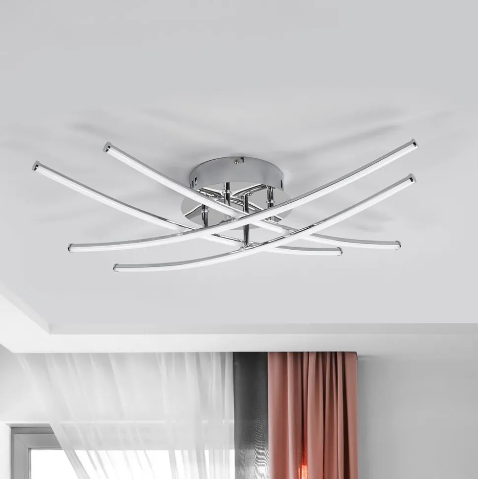 Lindby LED plafondlamp Yael, chroomkleurig, metaal, 67 cm lang