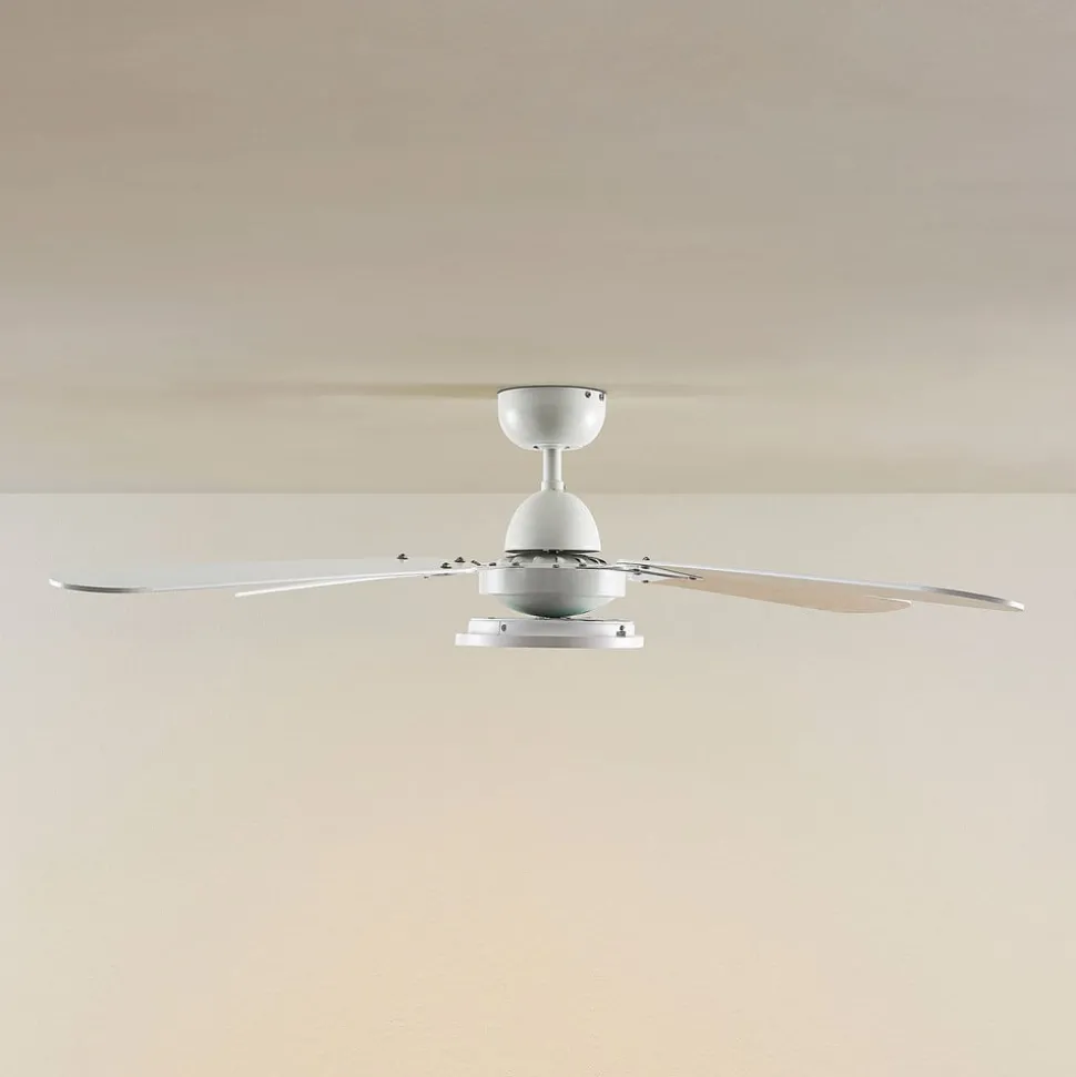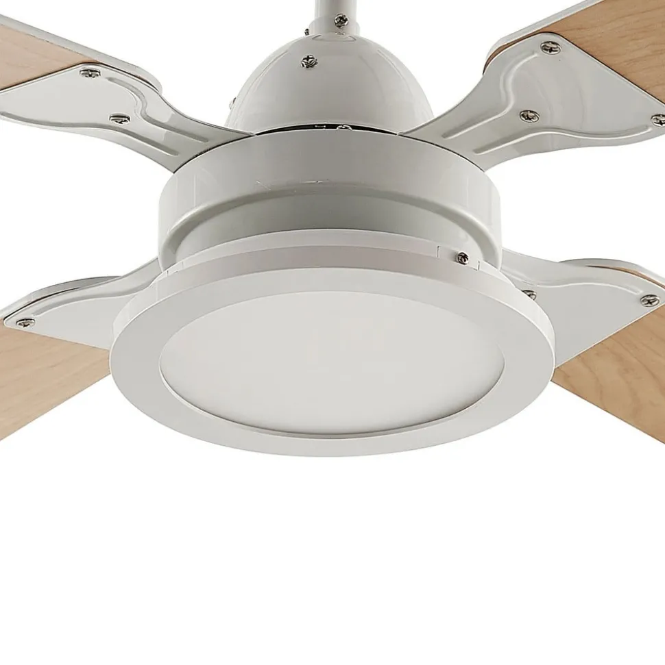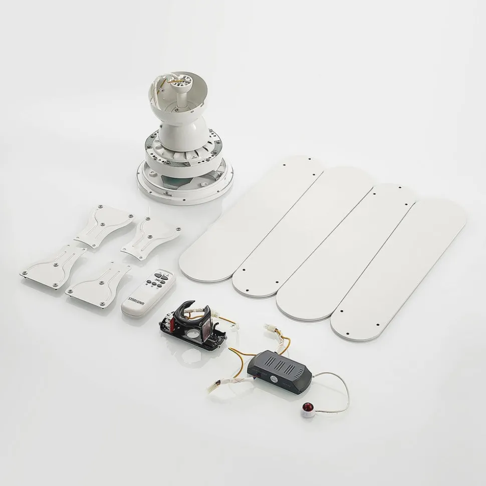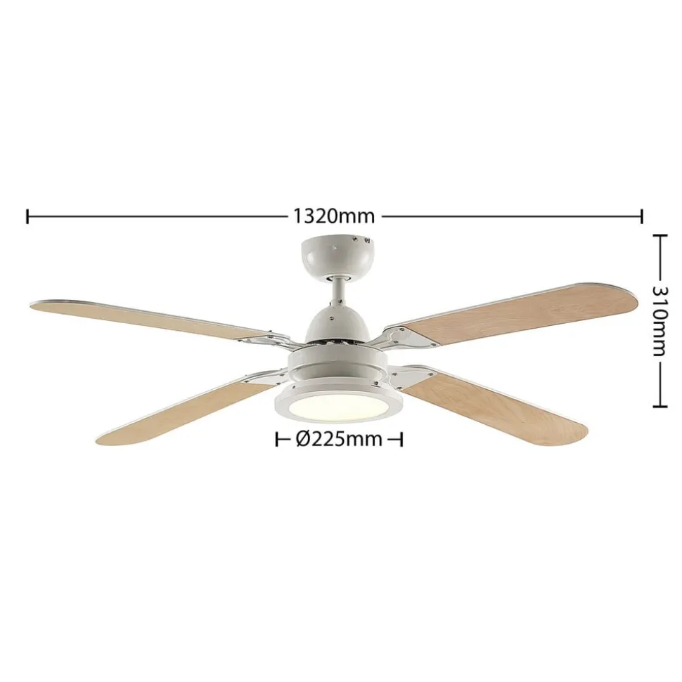 Moderne plafondventilator met LED-verlichting, dimbaar, lichtkleur regelbaar De Mamuti LED plafondventilator combineert modern design met grote functionaliteit. De LED-verlichting kan met een afstandsbediening worden gedimd en de lichtkleur (wit) kan worden geregeld. Ook de verschillende snelheden van de ventilator kunnen hiermee worden geregeld. Technische details Vermogen per snelheid: – 35 watt bij 1140 tpm – 30,4 watt bij 950 tpm – 27,2 watt bij 760 tpm – Maximale luchthoeveelheid: 32,73 m³/min – Maximale luchtsnelheid: 2,23 m/sec – Geluidsniveau ventilator: 47,1 dB (A) – Bedrijfswaarde (SV): 1,07 (m³/min)/W