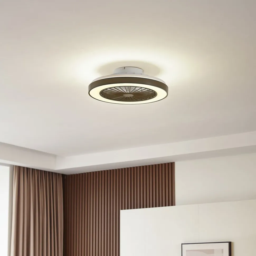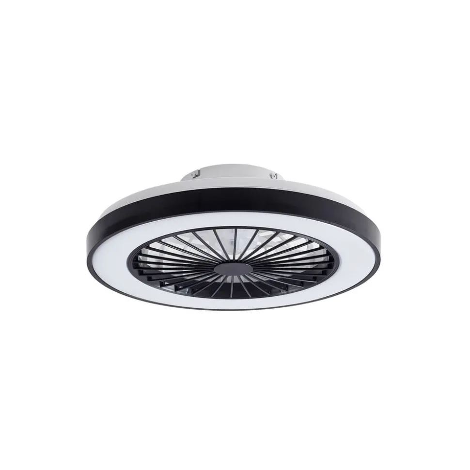 LED plafondventilator Teleo met RGB- en CCT-functie in zwarte kleurstelling De LED plafondventilator Teleo in zwart design combineert stijlvolle elegantie met veelzijdige functionaliteit. Met een geïntegreerde LED lichtbron biedt dit product een regelbare lichtkleur (CCT) waarmee de lichttemperatuur naar wens kan worden aangepast – van warme tot koele witte tinten. De moderne stijl van de Teleo LED plafondventilator past naadloos in verschillende interieurconcepten en maakt het de ideale metgezel voor woonkamers, eetkamers en slaapkamers. Dankzij de geïntegreerde dimfunctie, die wordt bediend met de meegeleverde afstandsbediening, kan de helderheid traploos worden aangepast om voor elke situatie de juiste sfeer te creëren. Technische gegevens – 1000 tpm – vermogen 18,7 watt – optimale kamergrootte 10m² – volume 35 dB (A) – de afstandsbediening wordt geleverd zonder batterijen – de plafondventilator kan ook worden bediend met de Tuya (beschikbaar voor iOS en Android)
