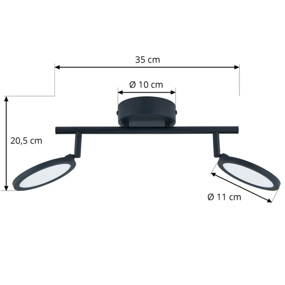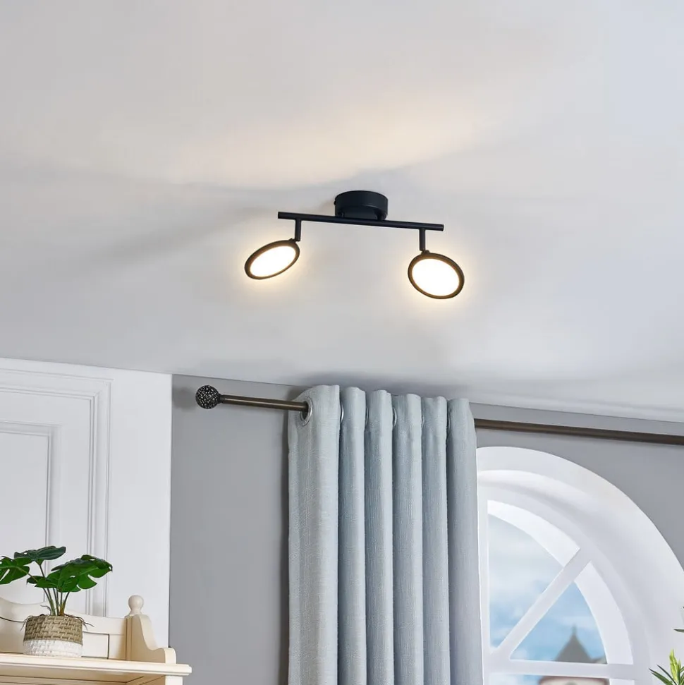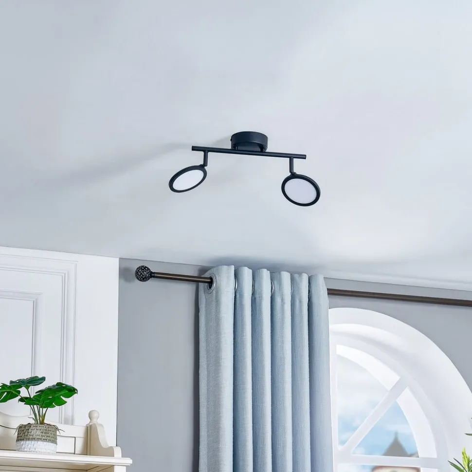 Lindby LED spot Manel, zwart, ijzer, 35 cm lang, 2-lamps.