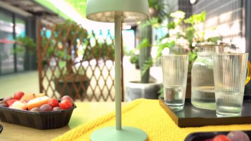 Saliegroene LED tafellamp Arietty – de batterijgevoede metgezel voor buiten