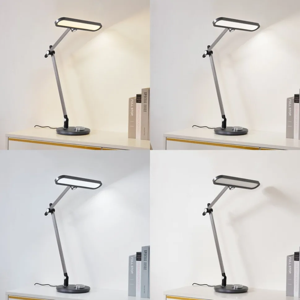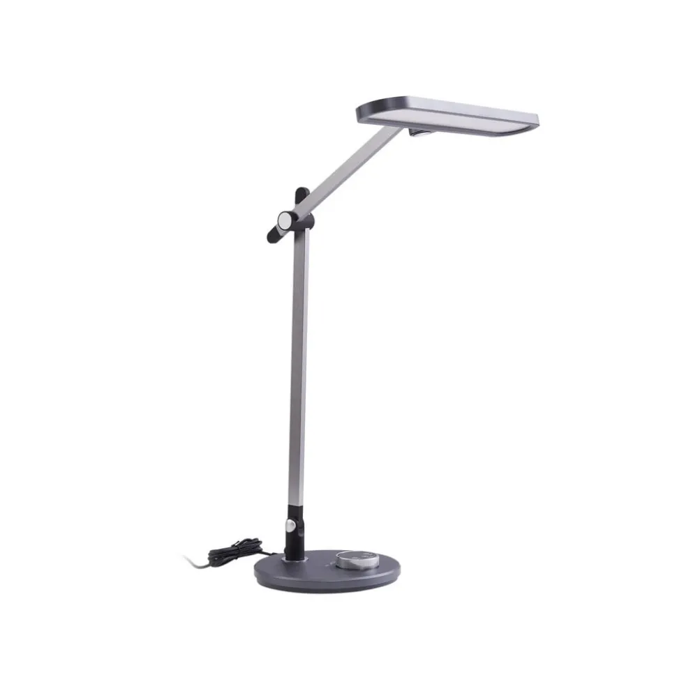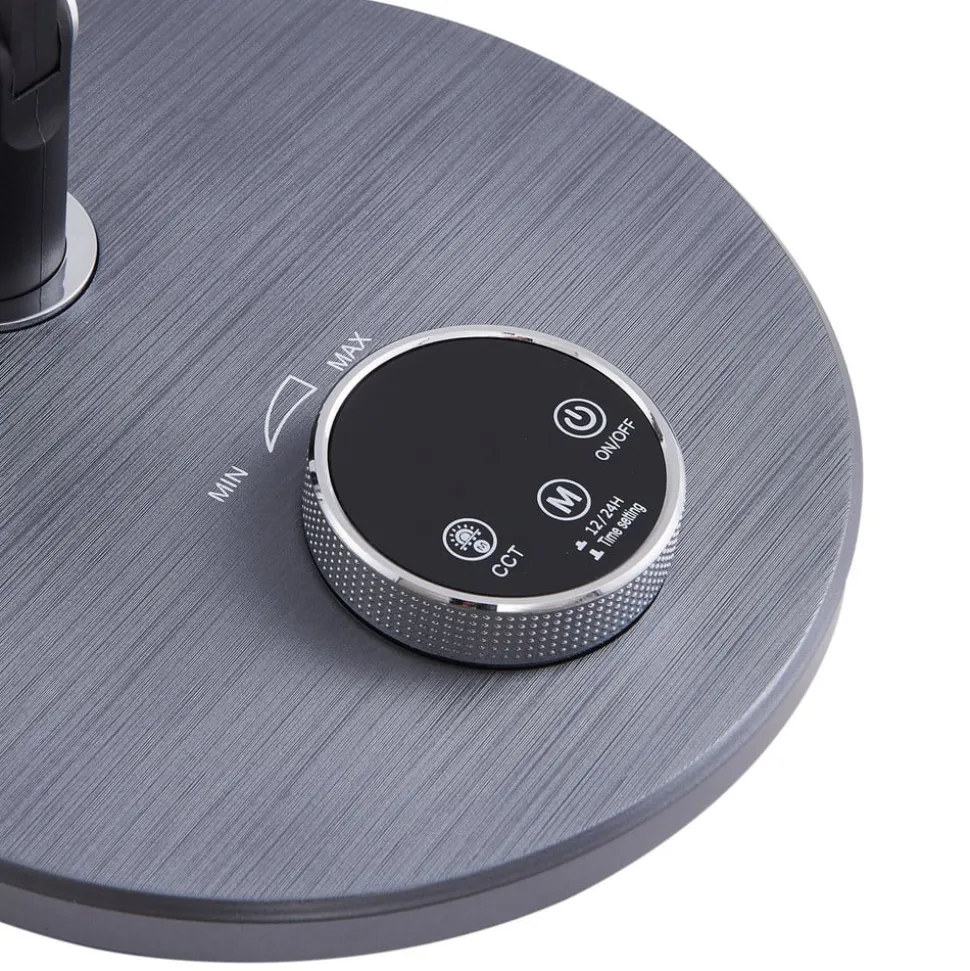 Moderne LED tafellamp Elvir inclusief dimmer en CCT-functie De LED tafellamp Elvir combineert de elegantie van kunststof en aluminium in haar ontwerp met de innovatieve regelbare lichtkleur (CCT), die het mogelijk maakt om de lichtkleur naar wens aan te passen (warmwit, daglicht + universeel wit). De lamp heeft ook een touchdimmer en kan traploos worden gedimd (10% – 100%). Deze tafellamp is niet alleen een stijlvolle accessoire voor moderne interieurs, maar ook een functionele metgezel voor verschillende kamers, zoals de eetkamer, woonkamer of studeerkamer.