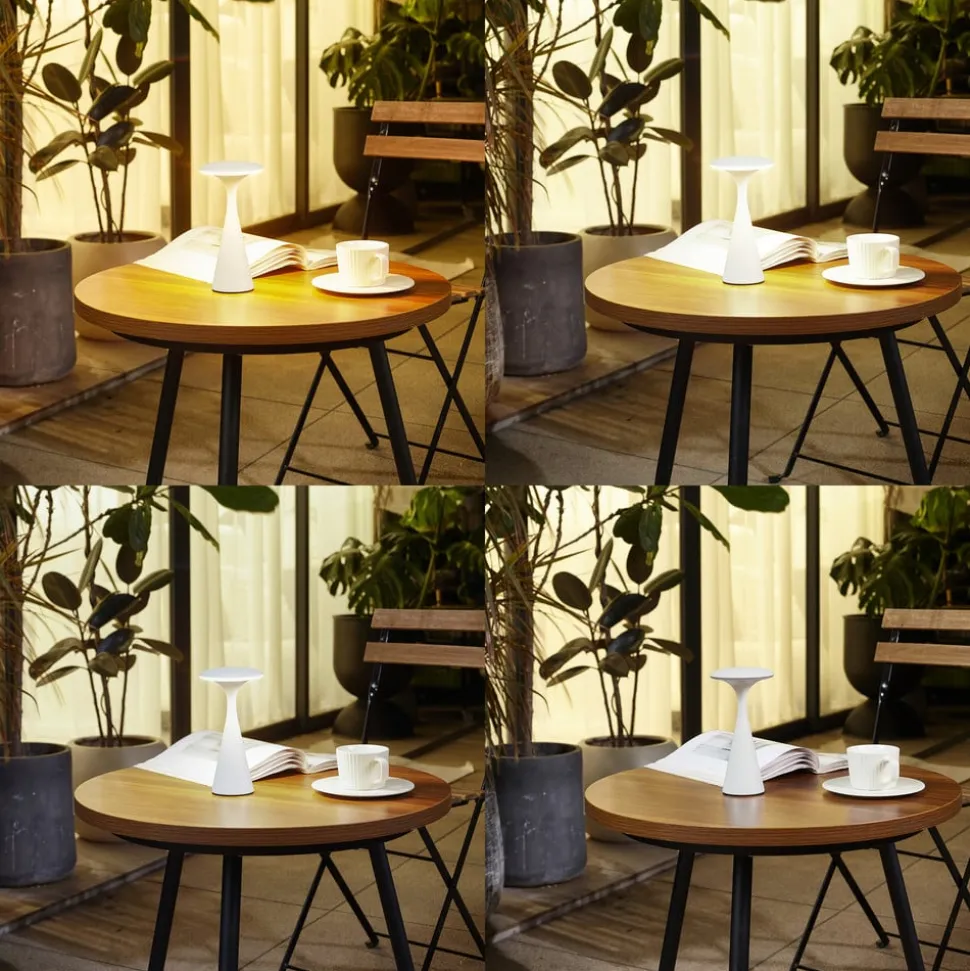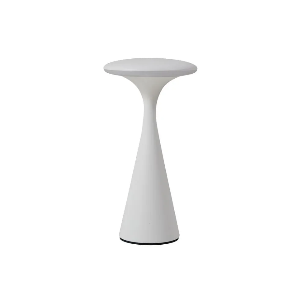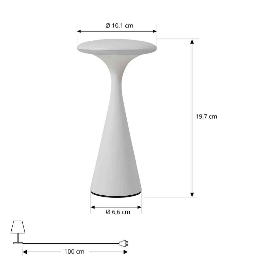 Praktische LED tafellamp Evelen voor gebruik in de tuin, op het terras of op het balkon De moderne, paddenstoelvormige LED tafellamp Evelen is een stijlvol verlichtingsobject voor gezellige decoratieve verlichting buitenshuis (beschermingsgraad IP54). De lamp wordt opgeladen via USB en kan traploos worden gedimd en de lichtkleur kan in drie stappen worden gewijzigd (2.200 K, 2.700 K, 3.000 K) – incl. USB-C-kabel