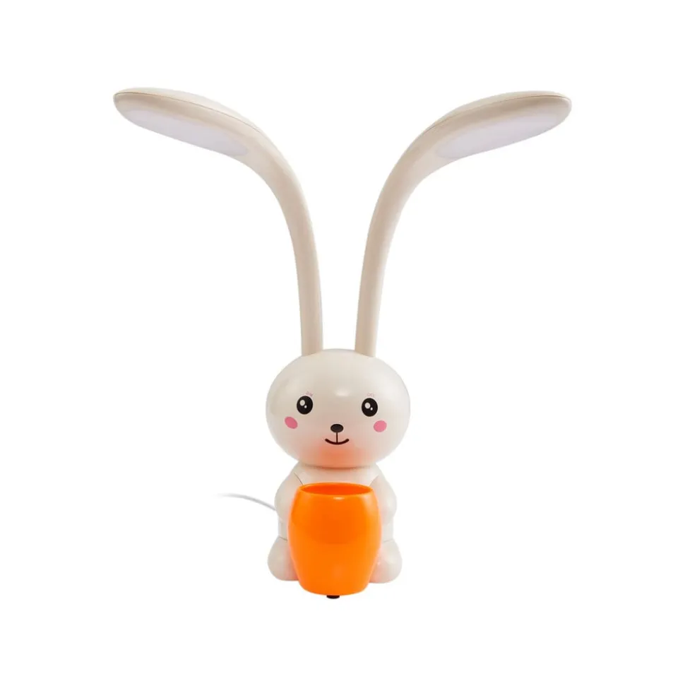 Haas LED tafellamp in aantrekkelijk konijnendesign met touchdimmer De Haas LED tafellamp met haar aantrekkelijke design is perfect voor elke kinderkamer of slaapkamer. Deze lamp combineert de regelbare lichtkleur (CCT) (warmwit, universeel wit en daglicht) en de dimfunctie (10% – 100%), waarmee de lichtkleur en helderheid naar wens kunnen worden aangepast. De permanent geïnstalleerde LED-lichtbron belooft niet alleen een lange levensduur, maar ook energie-efficiëntie. Met haar jeugdige en moderne ontwerp past de tafellamp naadloos in hedendaagse woonconcepten en creëert ze een sfeer die uitnodigt om zowel te ontspannen als te spelen.