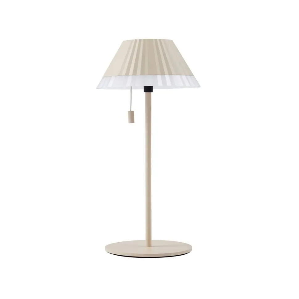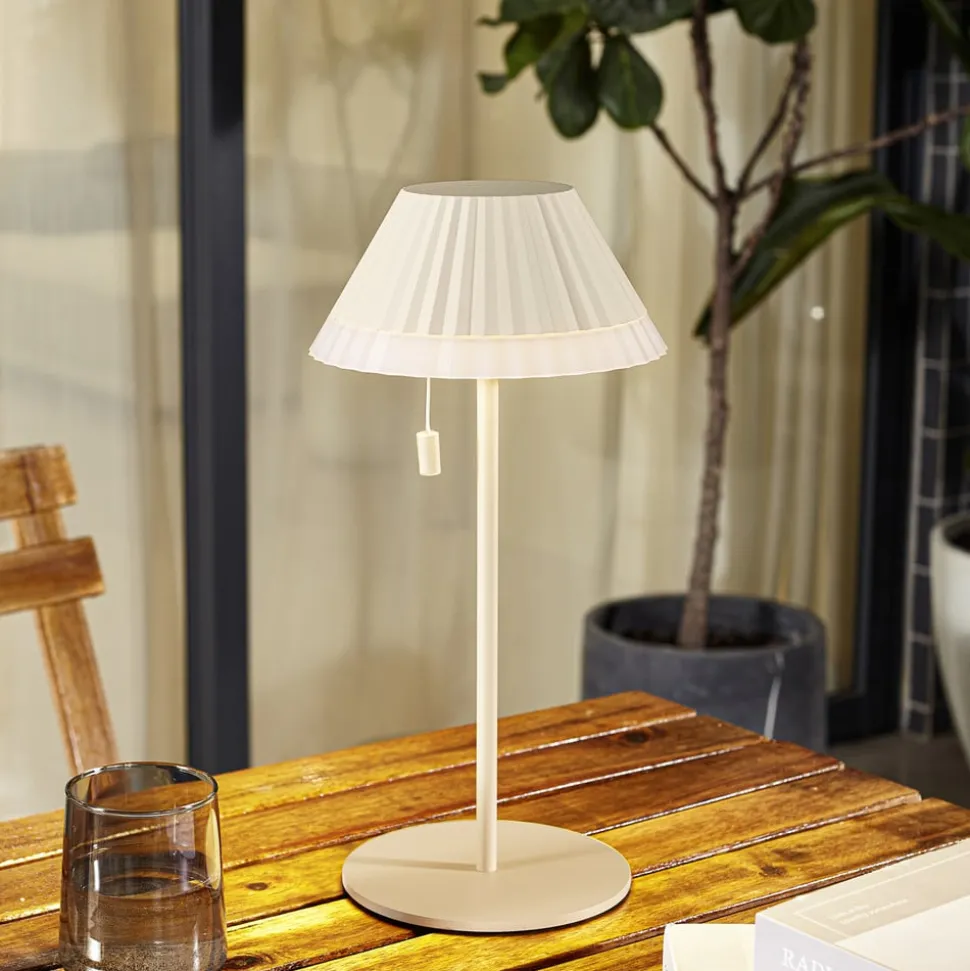 Ilvi LED tafellamp in beige kleurstelling met praktische CCT-functie Ontdek de Ilvi LED tafellamp, die niet alleen indruk maakt met zijn stijlvolle beige kleurstelling en hoogwaardige aluminium constructie, maar ook met zijn regelbare lichtkleur (CCT), die het mogelijk maakt om de lichtkleur naar wens te variëren. De CCT-functie wordt geregeld door de trekschakelaar: druk één keer op de schakelaar om het licht in warmwit (3.000K) te laten branden, trek twee keer aan de schakelaar om het in universeel wit (4.000K) te laten branden en gebruik de schakelaar drie keer om het licht uit te schakelen. Met een beschermingsgraad van IP54 is deze lamp robuust genoeg voor gebruik in verschillende omgevingen en brengt hij een moderne en Scandinavische esthetiek in woon- en eetkamers. Technische gegevens – 3,7V 4000mAh batterij – oplaadtijd batterij 6,5u – levensduur batterij 8u – incl. USB-kabel
