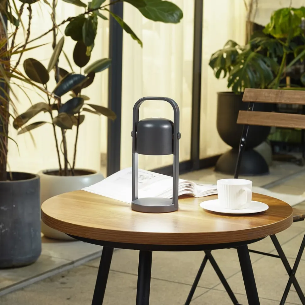 Kalevi LED tafellamp met CCT en dimfunctie – sfeervolle verlichting voor buiten Ervaar een nieuwe dimensie in buitenverlichting met de Kalevi LED tafellamp. Dankzij de regelbare lichtkleur (CCT) past het licht zich aan uw individuele behoeften aan en kunt u de lichttemperatuur naar wens regelen (warmwit, universeel wit en daglicht). Kalevi kan ook traploos worden gedimd (10% – 100%). Voor een ontspannen sfeer op het terras of als praktische lichtbron op het balkon – deze lamp creëert de perfecte sfeer. Technische gegevens – incl. 3,7V 4400mAh Li-Ion batterij – levensduur batterij 6,5u – oplaadtijd batterij 10,5u – incl. USB-C kabel