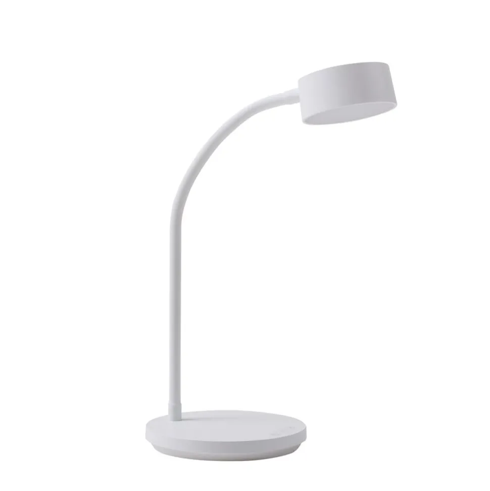 Witte LED tafellamp Maori met USB-kabel, dimbaar Met een flexibele arm en daardoor verstelbare, ronde lampenkop kan deze LED tafellamp individueel worden gebruikt. Dankzij het slanke frame en het ingetogen ontwerp is er overal een plek voor en dankzij de USB-aansluiting kan de lamp zelfs worden opgeladen op een laptop met de meegeleverde USB-kabel. De lichtkleur en helderheid kunnen in drie stappen worden aangepast met de drukknop – excl. netadapter