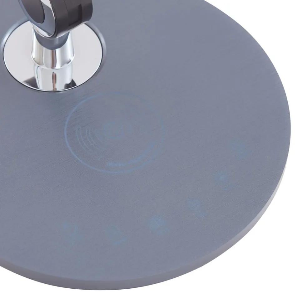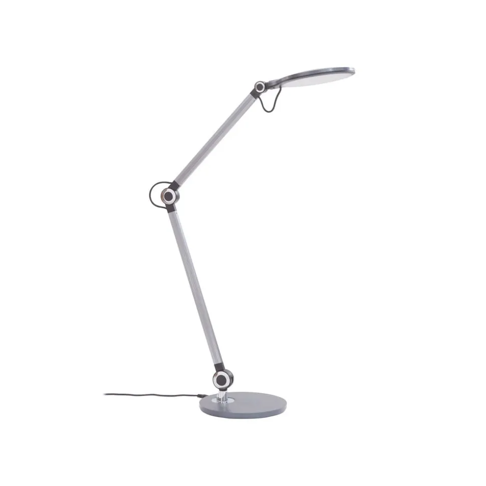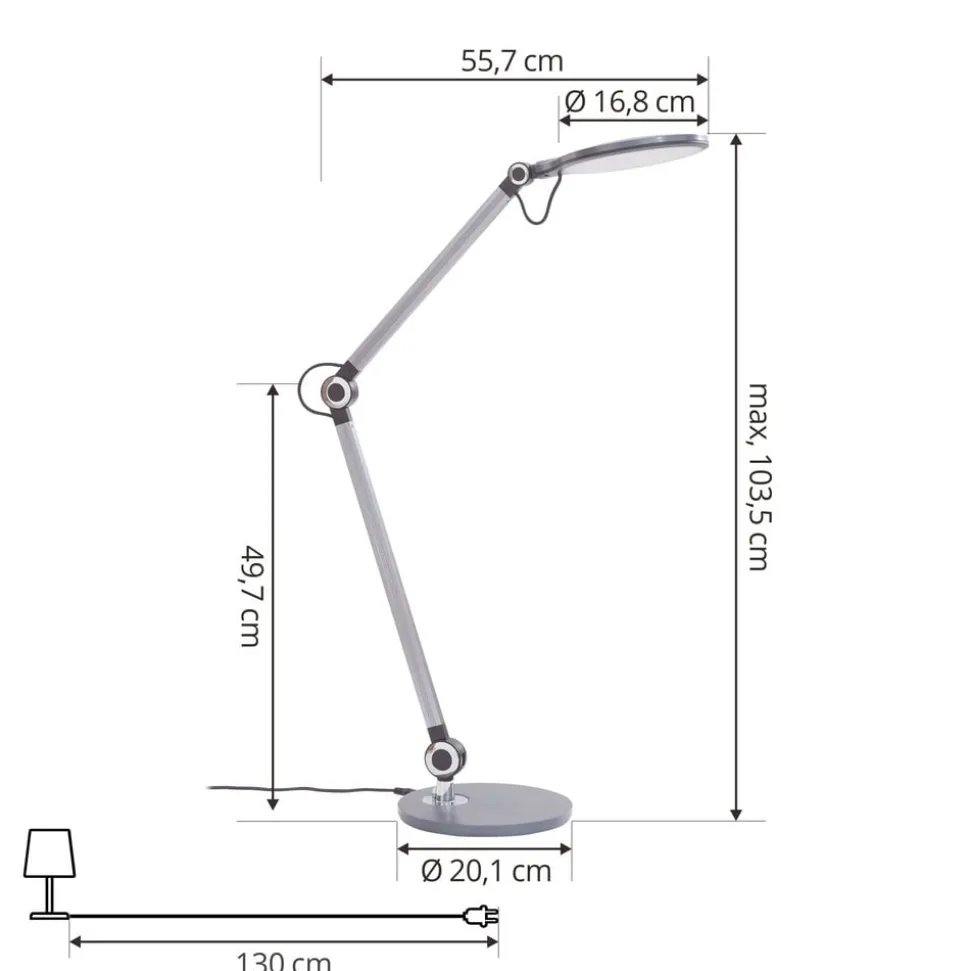 Grijze Nyxaris LED tafellamp met beweegbare arm en draadloos oplaadstation Nyxaris is een multifunctionele LED tafellamp die perfect is voor een kantoor of studeerkamer. Ze wordt geleverd in een grijze kleurstelling en heeft een praktische zwenkarm. De vast geïnstalleerde LED’s zijn dimbaar en kunnen hun lichtkleur in drie fasen aanpassen (warmwit, universeel wit en daglicht). Dit betekent dat de Nyxaris LED tafellamp altijd voor passende verlichting kan zorgen en op elk moment flexibel kan worden aangepast. Nyxaris heeft ook een draadloos oplaadstation, waarmee je eenvoudig een smartphone of ander apparaat kunt opladen.