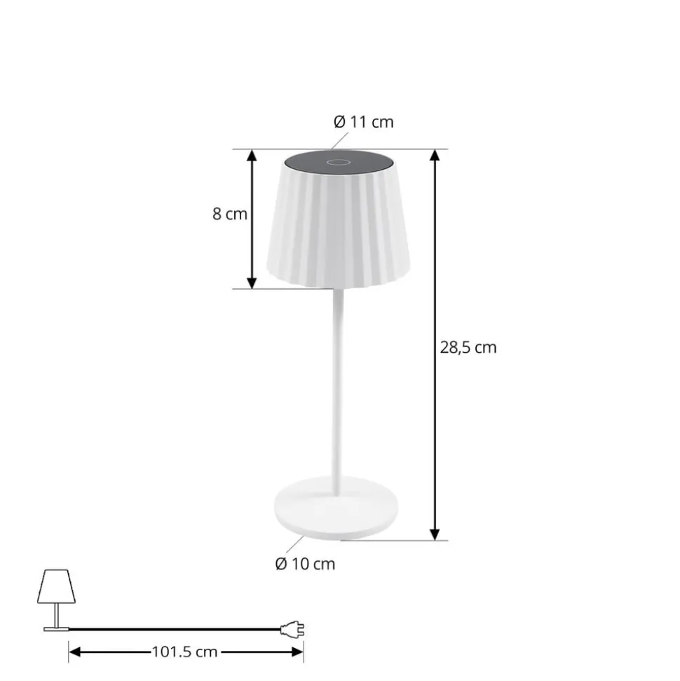 De LED tafellamp op accu Esali combineert een modern design met functionele veelzijdigheid. De lamp is gemaakt van hoogwaardig gegoten aluminium en polycarbonaat en heeft een elegante, matwitte afwerking. De geïntegreerde LED-lichtbron zorgt voor een energiezuinig, warmwit licht met een lichttemperatuur van 3.000 K, dat een aangename sfeer creëert. Dankzij de beschermingsgraad IP65 kan de lamp zowel binnen, in de woonkamer en eetkamer, als buiten op het balkon en terras worden gebruikt.