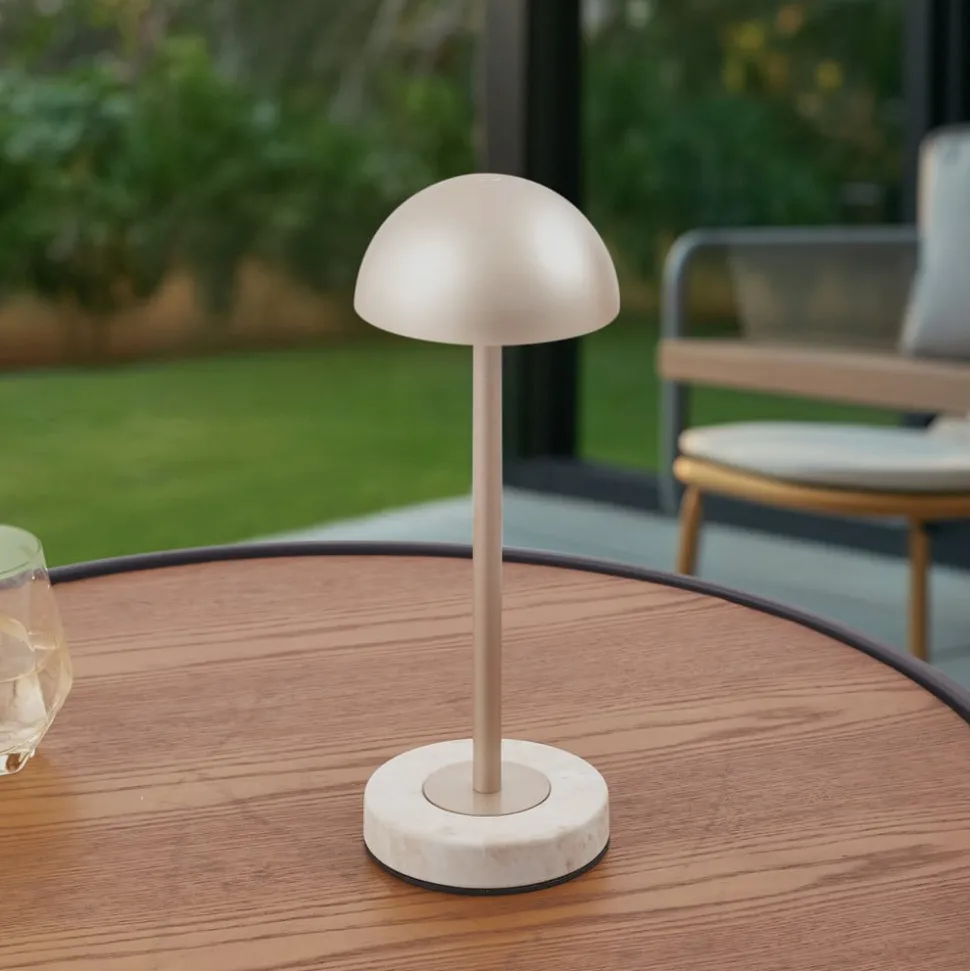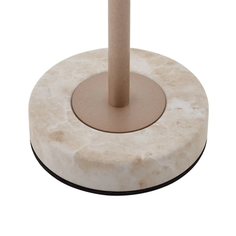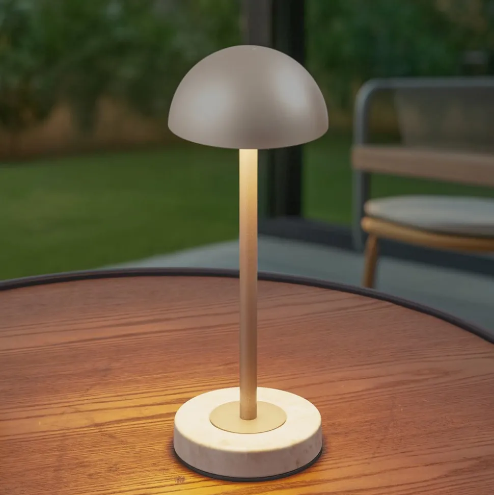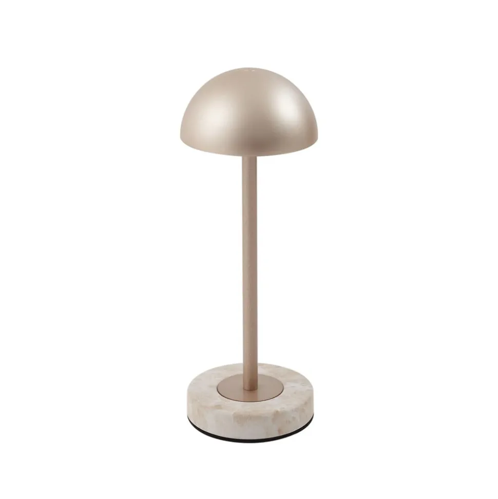 LED tafellamp Pippin in champagnekleurig goud met travertinvoet