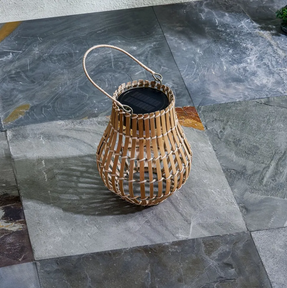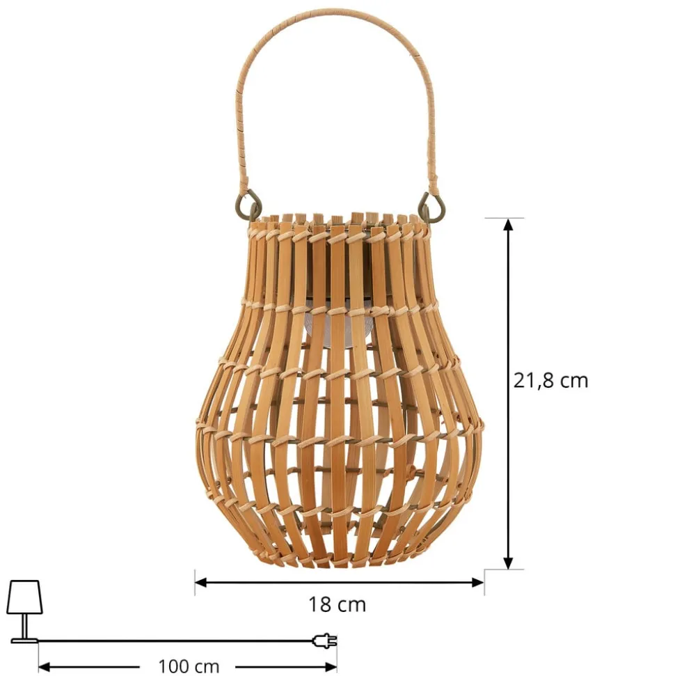 Amaria LED lamp op zonne-energie van bamboe – een stijlvolle aanvulling op het terras De LED lamp op zonne-energie voor het terras van bamboe is een milieuvriendelijke en stijlvolle optie voor buitenverlichting omdat hij wordt gevoed door een zonnepaneel. De lamp is ingedeeld in klasse III met IP44, wat betekent dat hij beschermd is tegen spatwater en dus geschikt is voor buitengebruik. Met de meegeleverde USB-C kabel kunnen de geïntegreerde batterijen snel en eenvoudig worden opgeladen. Deze lamp is een aantrekkelijke optie voor het verlichten van je terras of tuin – incl. 3,7V Li-Ion batterij – incl. USB-C kabel – batterijduur 6u