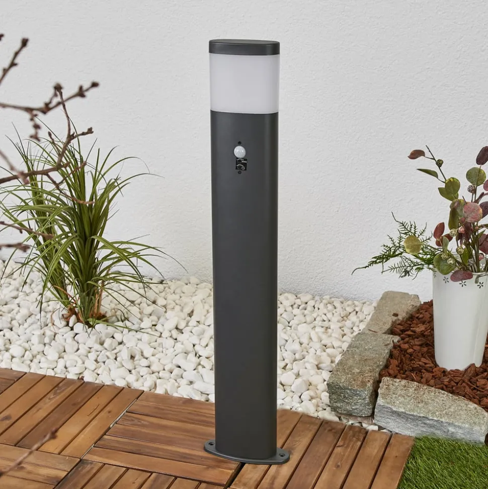 Sensorgestuurde LED tuinpadverlichting Marius met donkergrijze afwerking Deze tuinpadverlichting werkt met energiezuinige LED’s die warmwit licht produceren. Ze bevinden zich achter de witte afdekking van polycarbonaat, zodat het licht aangenaam en niet-verblindend is. Dankzij de sensor reageert de LED tuinpadverlichting op beweging in de omgeving door snel in te schakelen, zodat u zich geen zorgen hoeft te maken dat iemand in het donker blijft staan. In plaats daarvan kunnen ze zich goed oriënteren met Marius en vervolgens snel hun weg vinden naar het huis, de oprit of de tuin. Gegevens bewegingsmelder: – Bereik 2 tot 6 meter – Lichtduur variabel (5 seconden tot 6 minuten) – Detectiehoek 90°