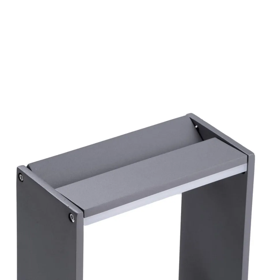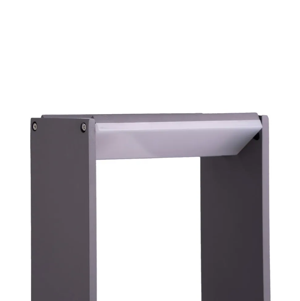 Hoekige LED tuinpadverlichting Luitgard van aluminium in donkergrijze kleur Luitgard is een speciale LED tuinpadverlichting. Het heeft een hoekig, framevormig lichaam van aluminium in een donkergrijze kleur. Bovenop de behuizing zit een permanent geïnstalleerde LED die warmwit licht genereert dat perfect is om buiten een gezellige sfeer te creëren. Hij is ook beschermd tegen stof en spatwater dankzij de beschermingsgraad IP54, wat hem een robuust karakter geeft. De Luitgard LED tuinpadverlichting heeft een minimalistisch ontwerp dat goed past bij de architectonische stijl van een huis