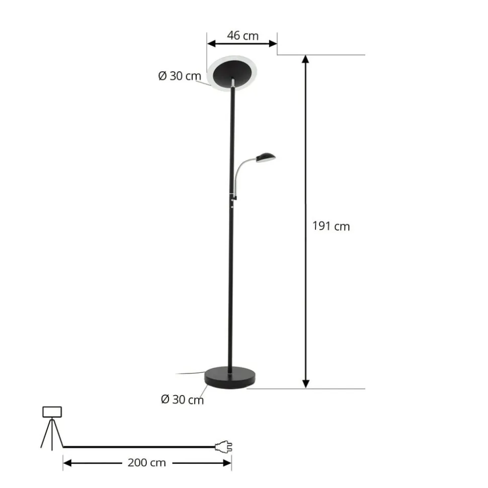Lindby LED uplighter Malea, 180 cm, zwart, leesarm