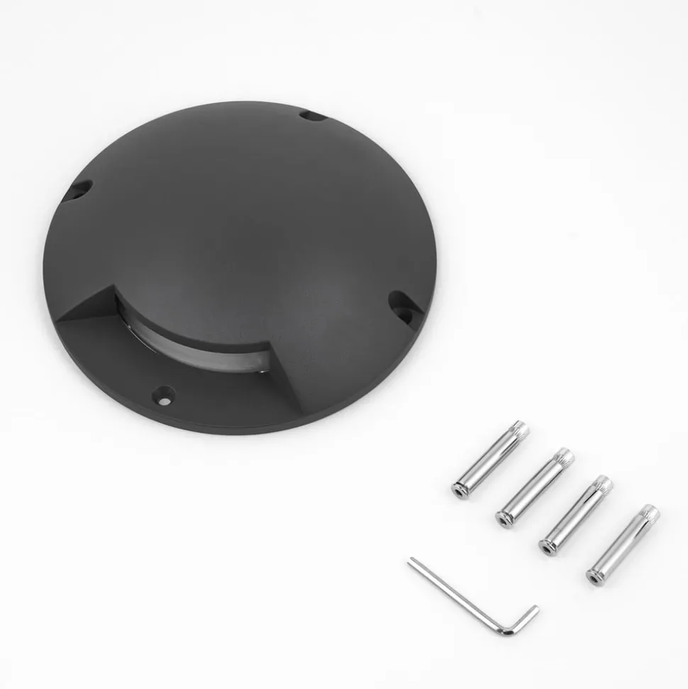 Moderne LED-vloeropbouwlamp Cormac in een discreet design De LED-vloeropbouwlamp Cormac overtuigt door haar stijlvolle uiterlijk en betrouwbare eigenschappen. De armatuur is rond, gemaakt van aluminium en heeft ook een kunststof diffuser. De permanent geïnstalleerde LED zit erachter en genereert een warmwit licht. Dankzij de beschermingsgraad IP67 is het armatuur stofdicht en beschermd tegen tijdelijke onderdompeling, waardoor het perfect bestand is tegen weersomstandigheden buitenshuis. De Cormac LED grondopbouwlamp kan worden belast met een gewicht van 1000 kg en slaat dus een uitstekend figuur op een oprit. Ze is ook bestand tegen een maximale oppervlaktetemperatuur van 45 °C, waardoor ze zelfs bij warmere temperaturen betrouwbaar is. Dankzij het moderne ontwerp kan ze moeiteloos worden geïntegreerd in de architecturale stijl van een huis zonder deze te verbreken.