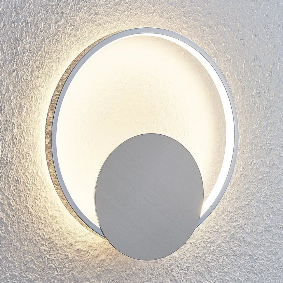 Ronde LED wandlamp Anays met gezellig licht Deze wandlamp wordt gekenmerkt door een bijzonder harmonieus ontwerp. De platte kap met een helder oppervlak wordt aangevuld door een crèmekleurige bies aan de onderrand en de universele ronde vorm heeft geen begin en geen einde en staat in plaats daarvan voor onvergelijkbare elegantie. Het licht van de LED’s dringt de kamer binnen met een warmwitte lichttemperatuur en heeft een zeer gezellig effect, waardoor Anays een uitstekende keuze is voor accentverlichting met een sfeervolle uitstraling.