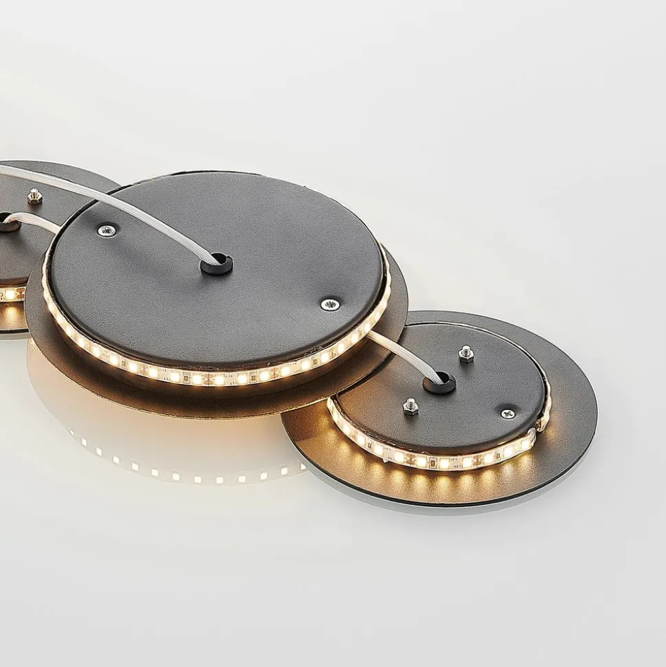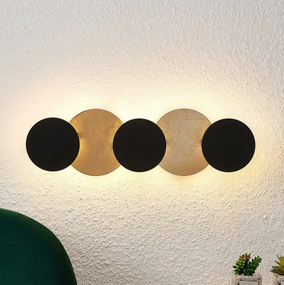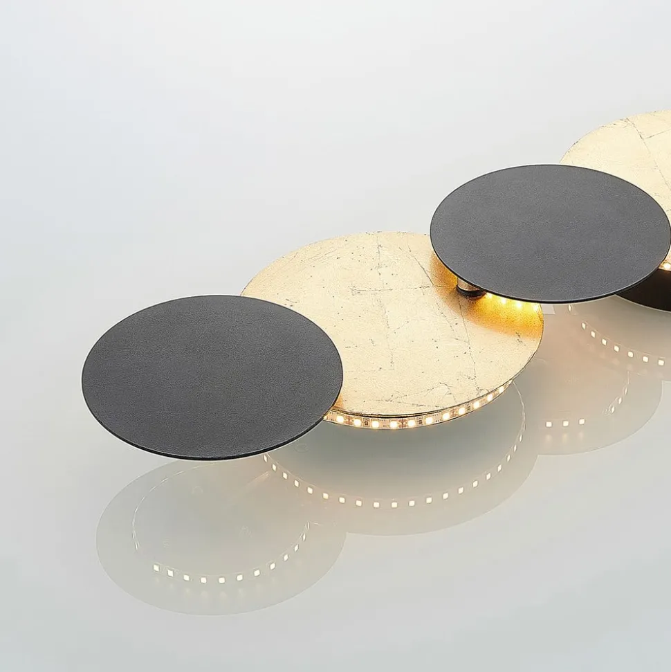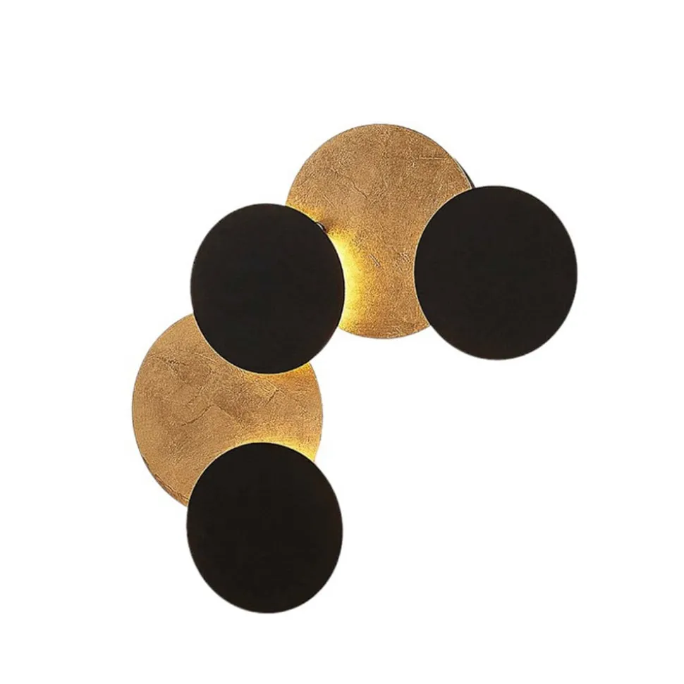 Zwart en goud in decoratieve harmonie – Grazyna LED wandlamp De zwart en gouden Grazyna wandlamp, die aan de achterkant is voorzien van energiezuinige LED’s, ziet eruit als een moderne wanddecoratie. Dit betekent dat de toeschouwer zich op het eerste gezicht niet realiseert dat dit een indirecte lichtbron is. Gemonteerd aan de muur, zorgt Grazyna voor een zachte, aangename verlichting met warmwit licht wanneer het is ingeschakeld. Het contrast van zwart en goud wordt nog meer benadrukt, waardoor bijna de indruk van een 3D-beeld ontstaat. De Grazyna LED wandlamp is geschikt voor gebruik in moderne woonruimtes, of het nu in de woonkamer, eetkamer of hal is. Grazyna is ook een armatuur dat aan het plafond kan worden gemonteerd.