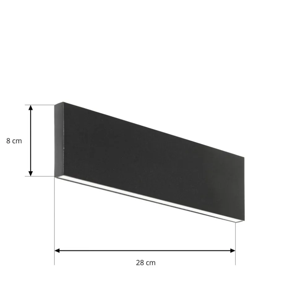 Zwarte LED wandlamp Ignazia van metaal voor een aangename woonkamerverlichting, dimbaar Ignazia is een modern verlichtingselement met een lineaire look dat bijzonder goed past in puristische interieurs, maar ook in andere stijlen kan worden geïntegreerd. De LED technologie van de wandlamp zorgt voor een goede energie-efficiëntie en het licht is aangenaam niet-verblindend. De LED wandlamp is daarom ideaal voor gebruik in gangen en woonkamers als accent- of aanvullende verlichting. Het licht wordt zowel naar boven als naar beneden gericht en het matzwarte oppervlak perfectioneert het minimalistische design op een aantrekkelijke manier. De LED wandlamp is dimbaar en kan in helderheid worden aangepast met zowel leading edge als fase afsnijdimmers.