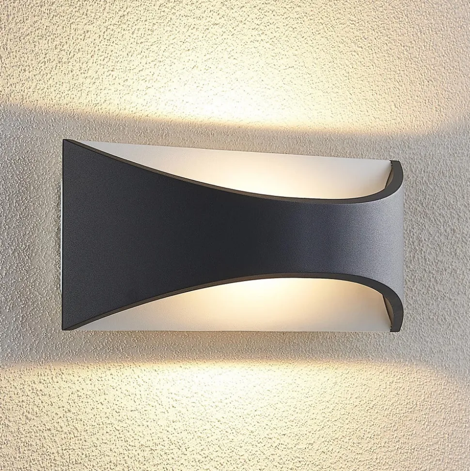 Lindby LED wandlamp Mathea, 30 cm, antraciet, aluminium, IP65