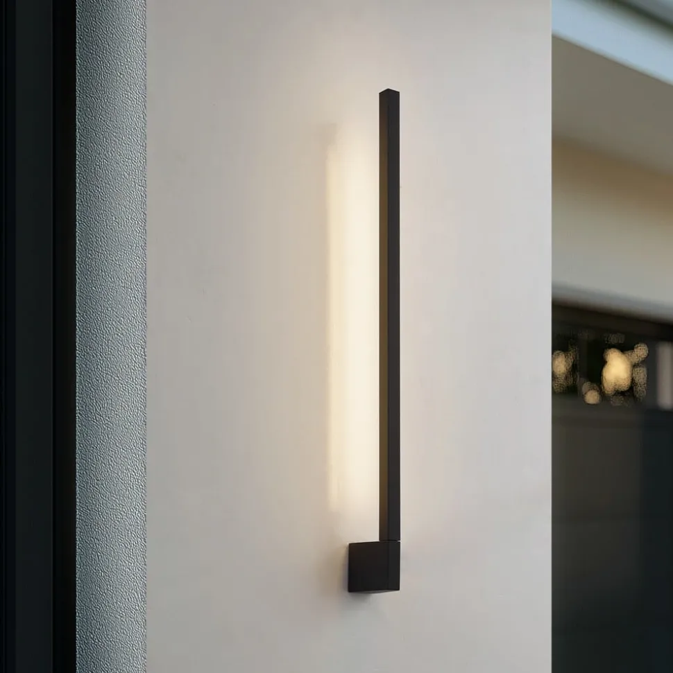 Lindby LED wandlamp Neano, 80cm, zwart, metaal, IP54