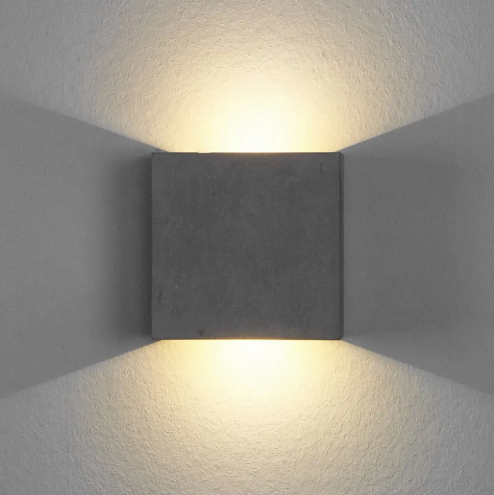 Lindby LED wandlamp Yva, grijs, beton, 13 x 13 cm, omhoog/omlaag