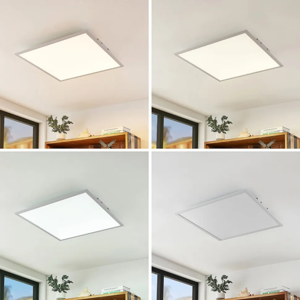 Lichtsterkte Luay LED paneel met afstandsbediening en kleurwisselfunctie Het vierkante en platte Luay LED paneel biedt gelijkmatige en krachtige verlichting in één. Het gemak wordt gegarandeerd door de meegeleverde afstandsbediening, waarmee het licht in verschillende lichtstanden (3.000 K/4.000 K/6.000 K) kan worden geschakeld of traploos kan worden gedimd. Dankzij de geheugenfunctie wordt de laatste instelling opgeslagen en direct opgeroepen wanneer het licht opnieuw wordt ingeschakeld. Schakelen via de conventionele wandschakelaar is ook mogelijk. Het kan niet alleen worden in- en uitgeschakeld, maar ook worden omgeschakeld naar de drie lichtstanden. Hiervoor hoeft de wandschakelaar maar een paar keer te worden ingedrukt. Het Luay LED paneel is daarom ideaal voor bijvoorbeeld keukens, woonkamers of gangen. Het kan ook worden gebruikt om moderne kantoren of thuiswerkplekken van voldoende licht te voorzien.